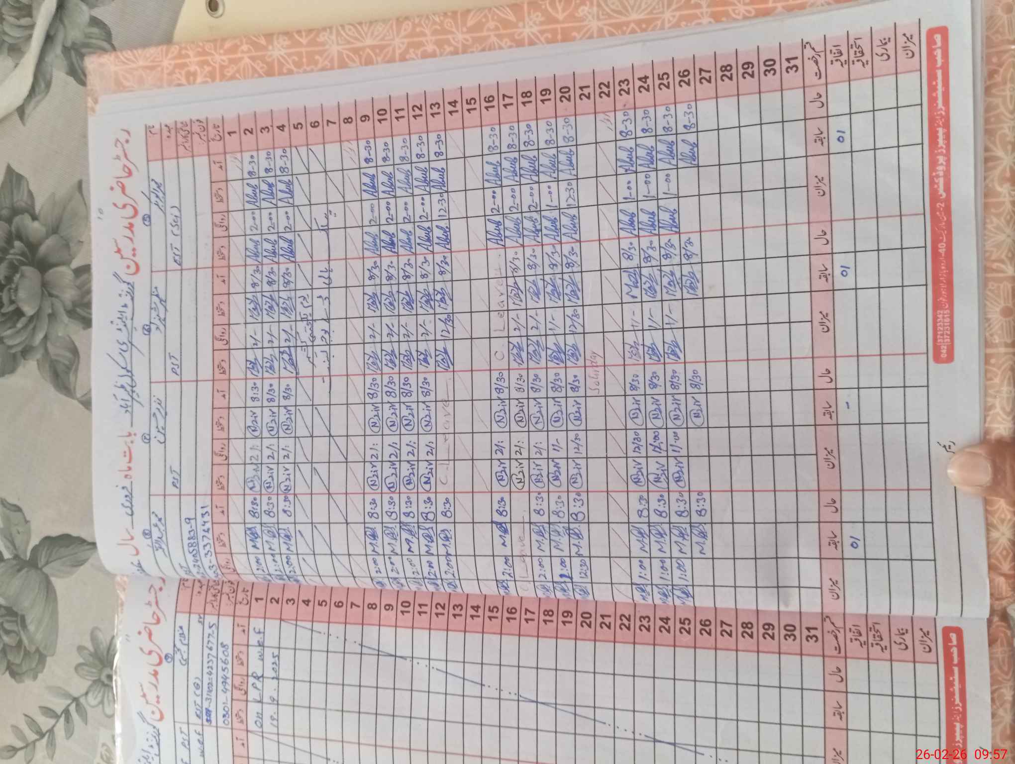 | CNIC | Full Name | Designation | R/C | Absence During Last Calender Month |