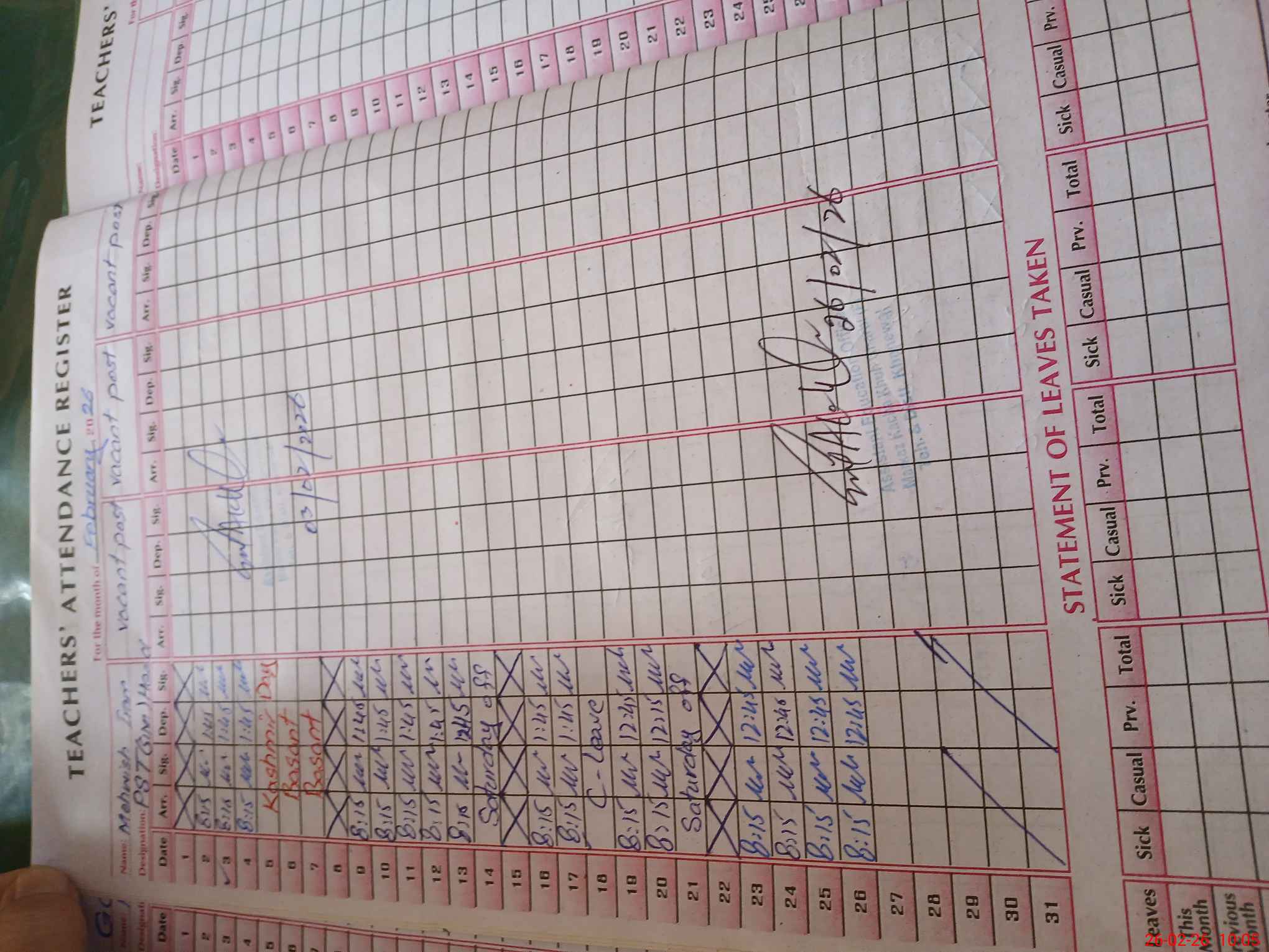 | Name: Me**** Ir**** Designation: (School Headmaster's/Headmistress's) PST Phone/Cell Number: 03**** |