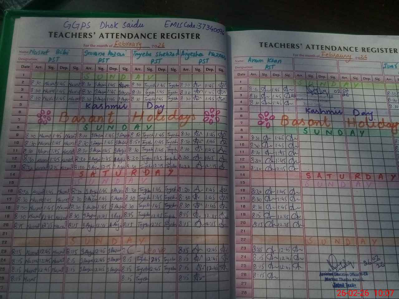 | Certified that this School was Inspected by the Undersigned MEA/DMO Today and the Information Stated Above is as Per Record. | |||||
