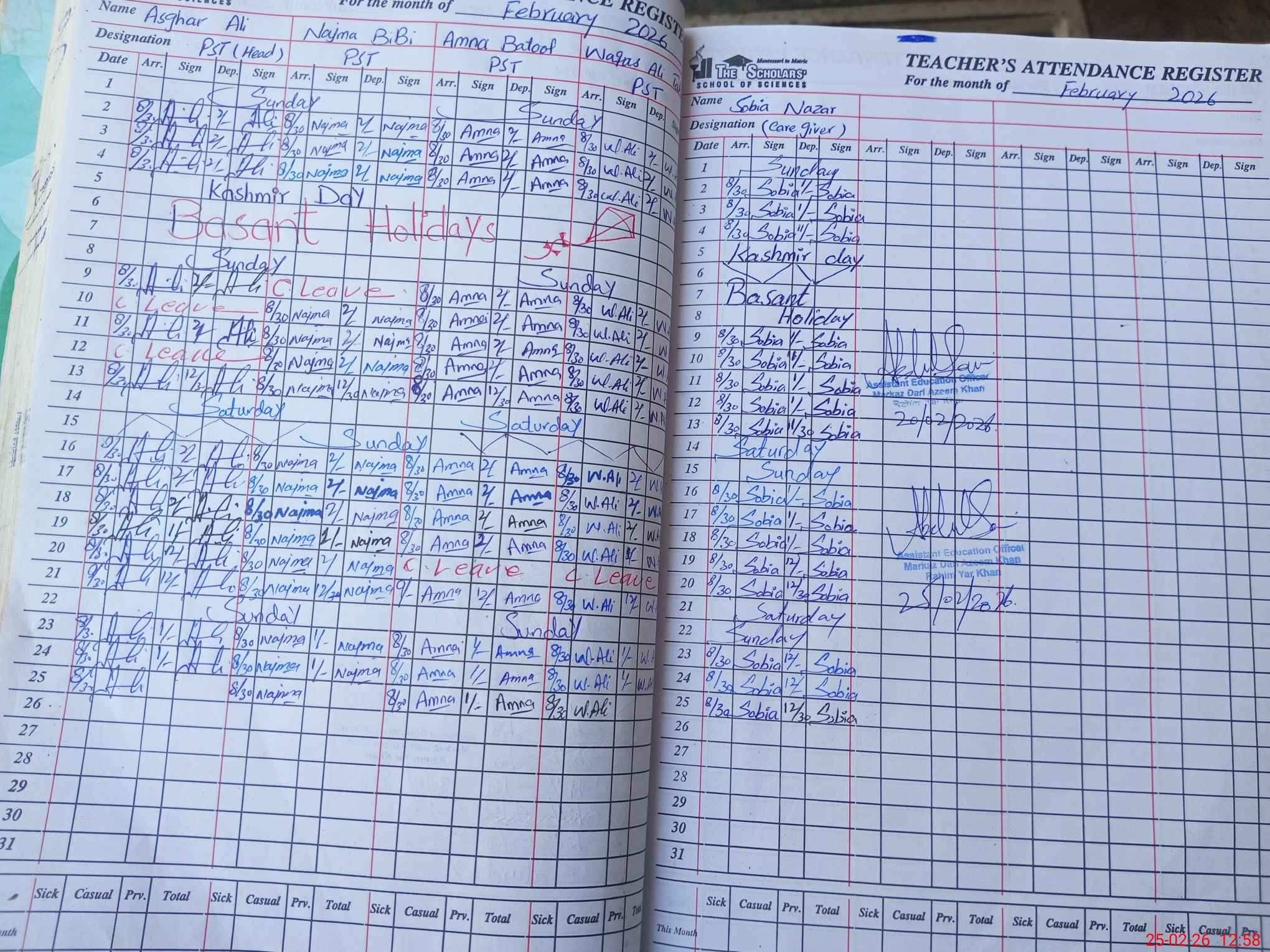 | Attendance Register | Head Teacher | MEA with School | Visit Proof |