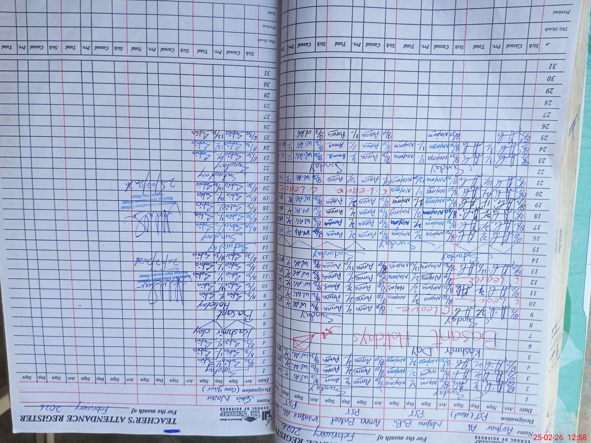 | Leave | Duty | Absent | Maternity | Medical | Ex- Pak |