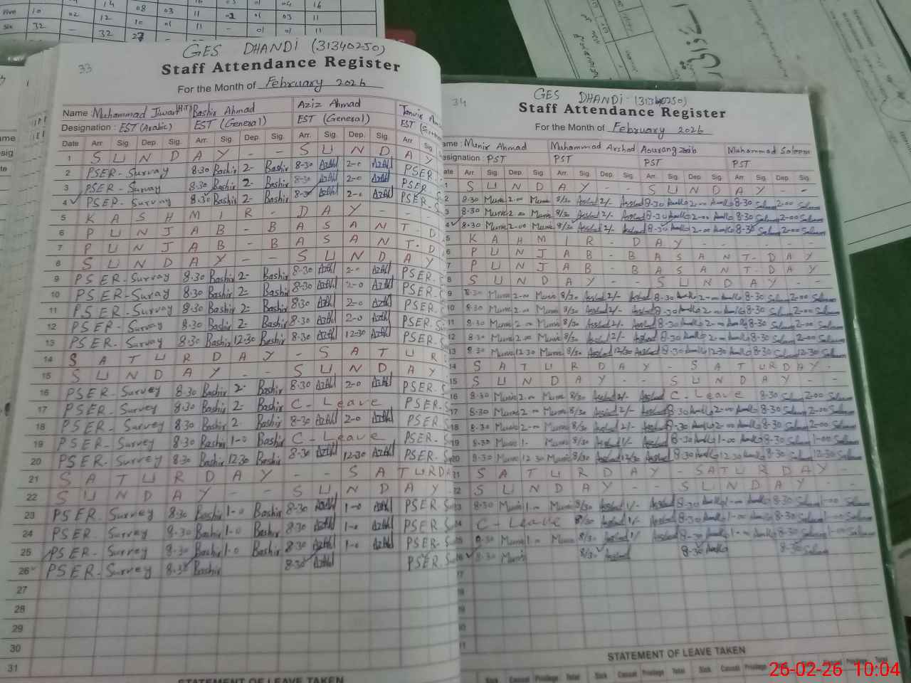 | Leave | Duty | Absent | Maternity | Medical | Ex- Pak |