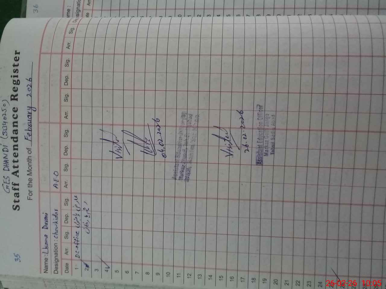 | Sr.No. | Visit Date | Designation | ||