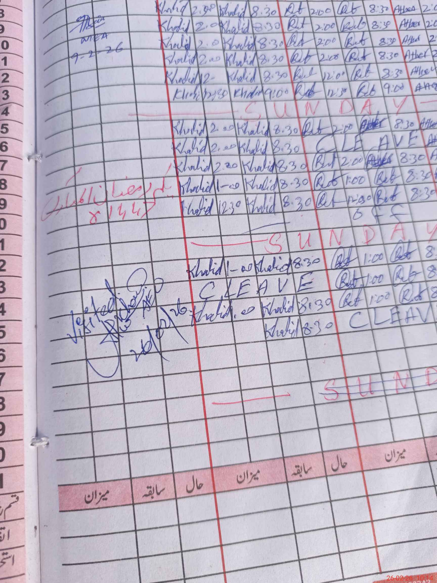 | CNIC | Full Name | Designation | R/C | Absence During Last Calender Month |