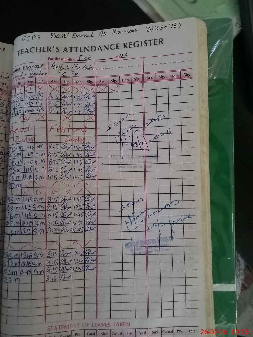 | EMIS Code: 31330769 | Name of School: GGPS BASTI BARKAT ALI KAMBO | |||