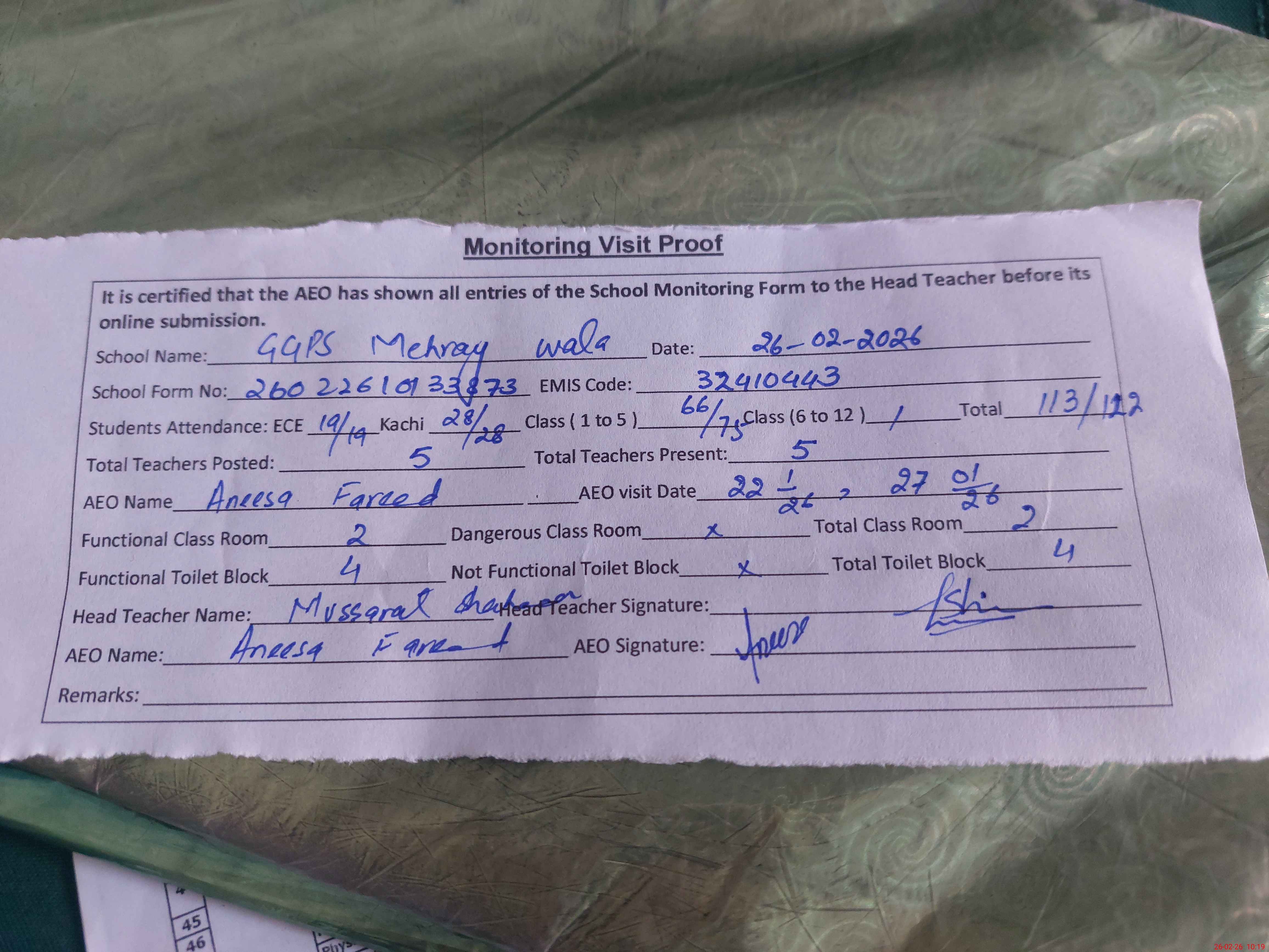 | EMIS Code: 32410443 | Name of School: GGPS MEHRAY WALA | |||