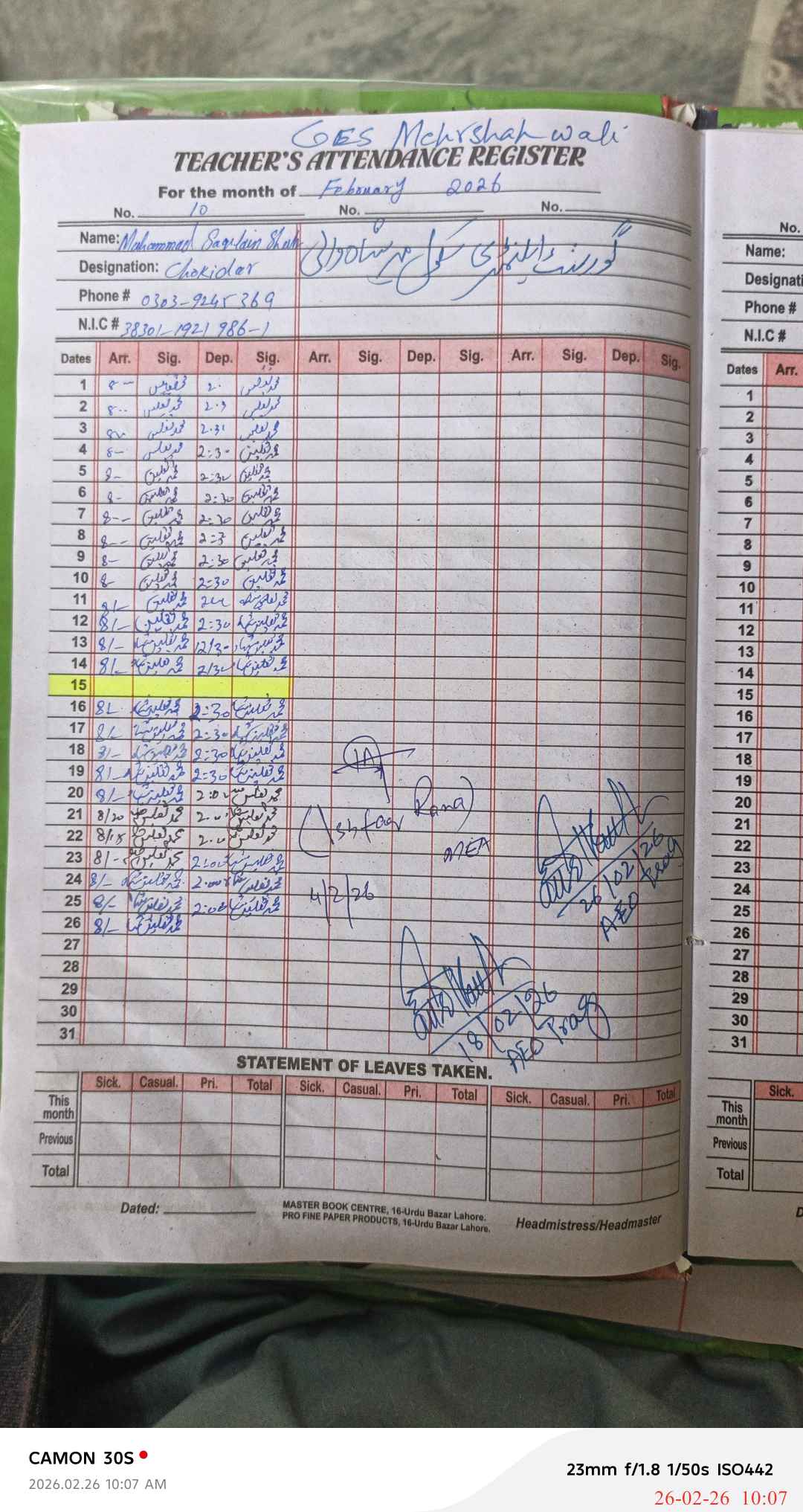 | EMIS Code: 38310041 | Name of School: GES MEHR SHAH WALI | |||
