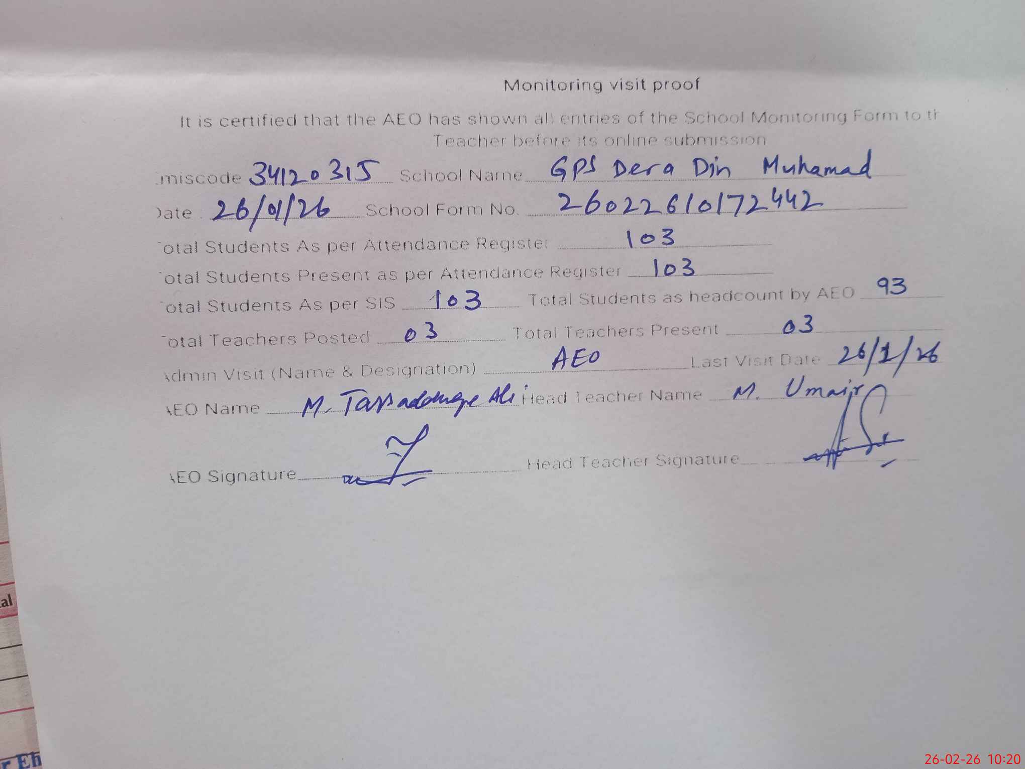| EMIS Code: 34120315 | Name of School: GPS DERA DIN MUHAMMAD | |||