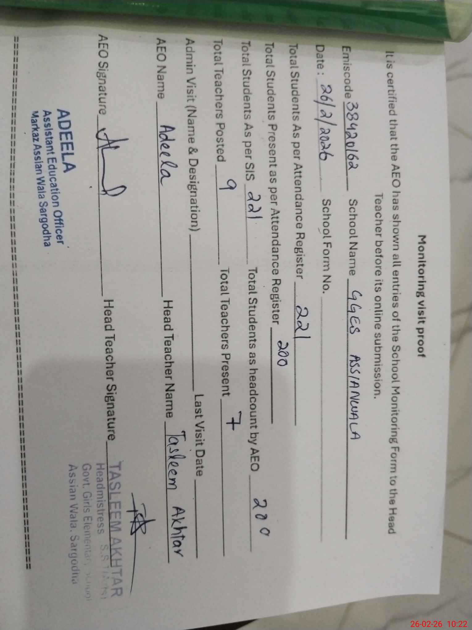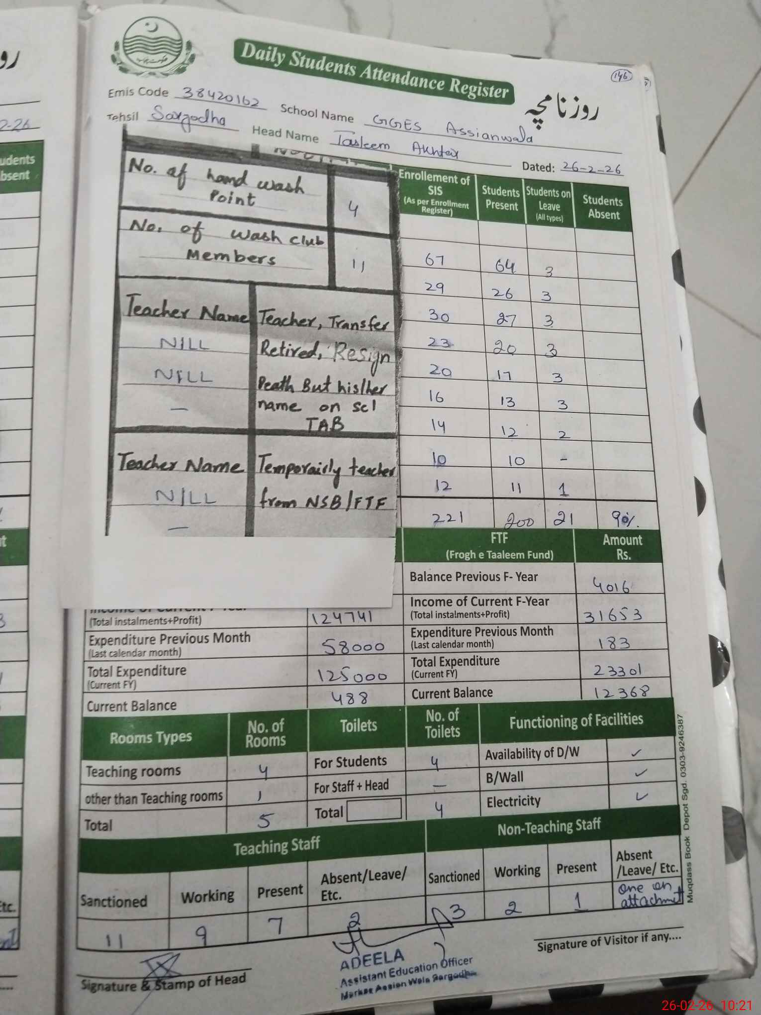 | EMIS Code: 38420162 | Name of School: GGES ASSIAN WALA | |||