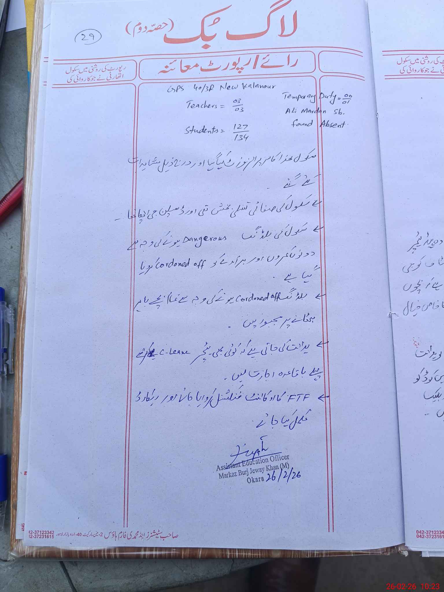| EMIS Code: 39320950 | Name of School: GPS 40/3.R NEW KALA NAUR | |||