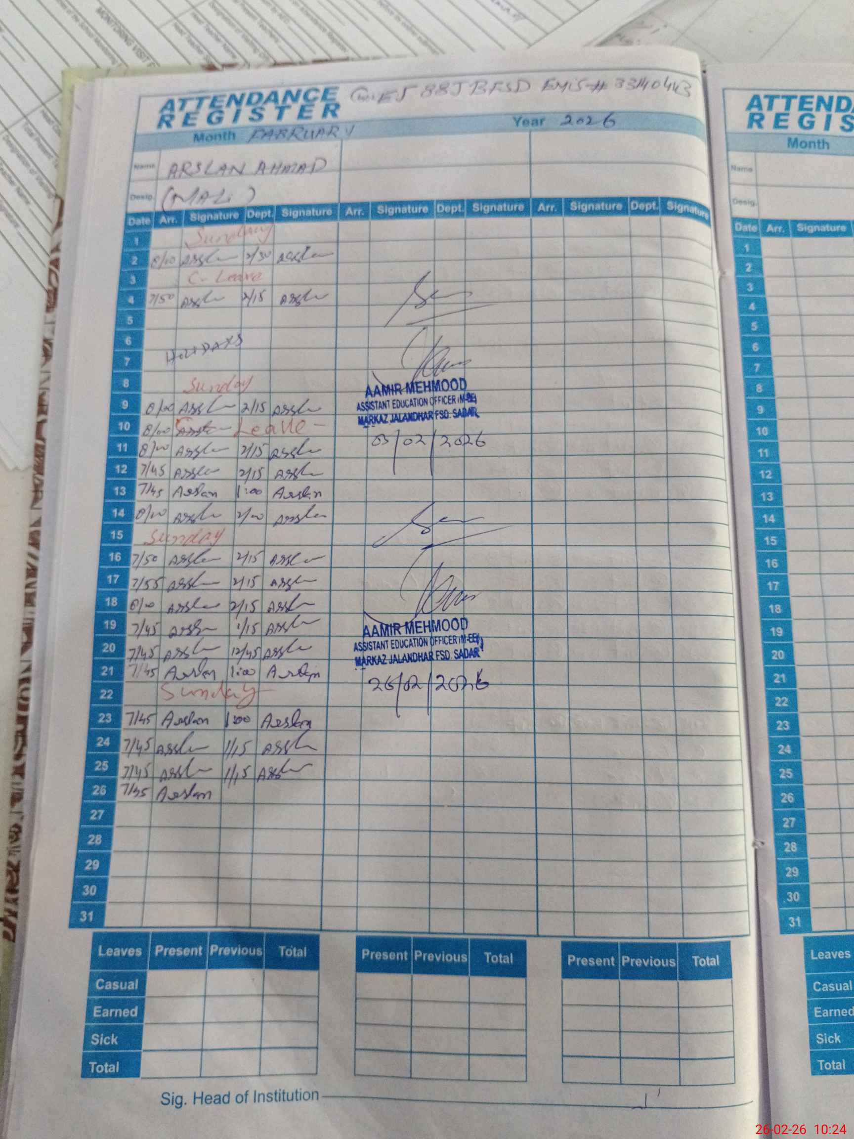 | Leave | Duty | Absent | Maternity | Medical | Ex- Pak |