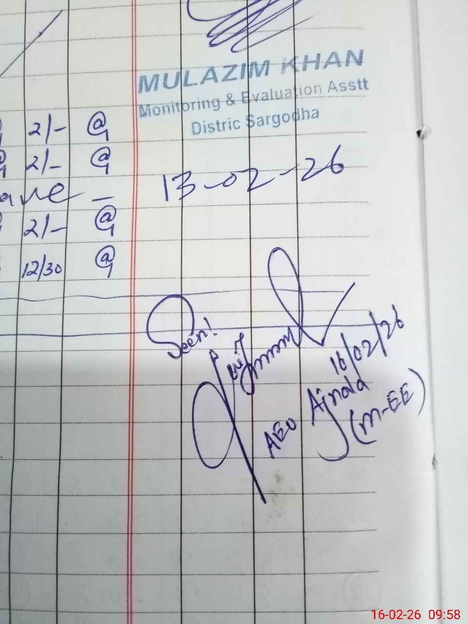 | Monitoring Date: 16-02-2026 | Start Time: 16-02-2026 09:19 AM | End Time: 16-02-2026 10:02 AM | Name of MEA: MU**** FA**** AH**** | |