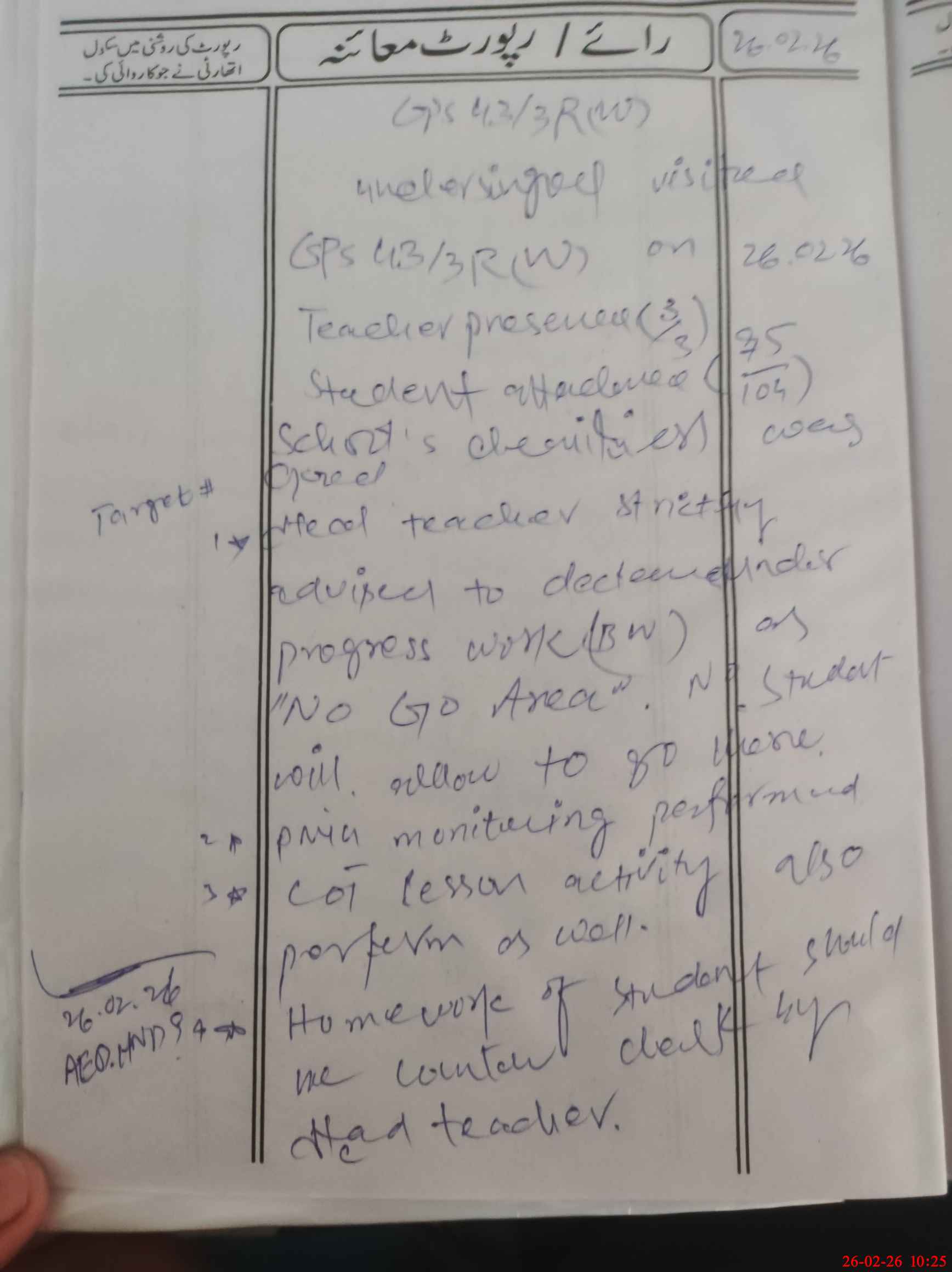 | Attendance Register | Head Teacher | MEA with School | Visit Proof |