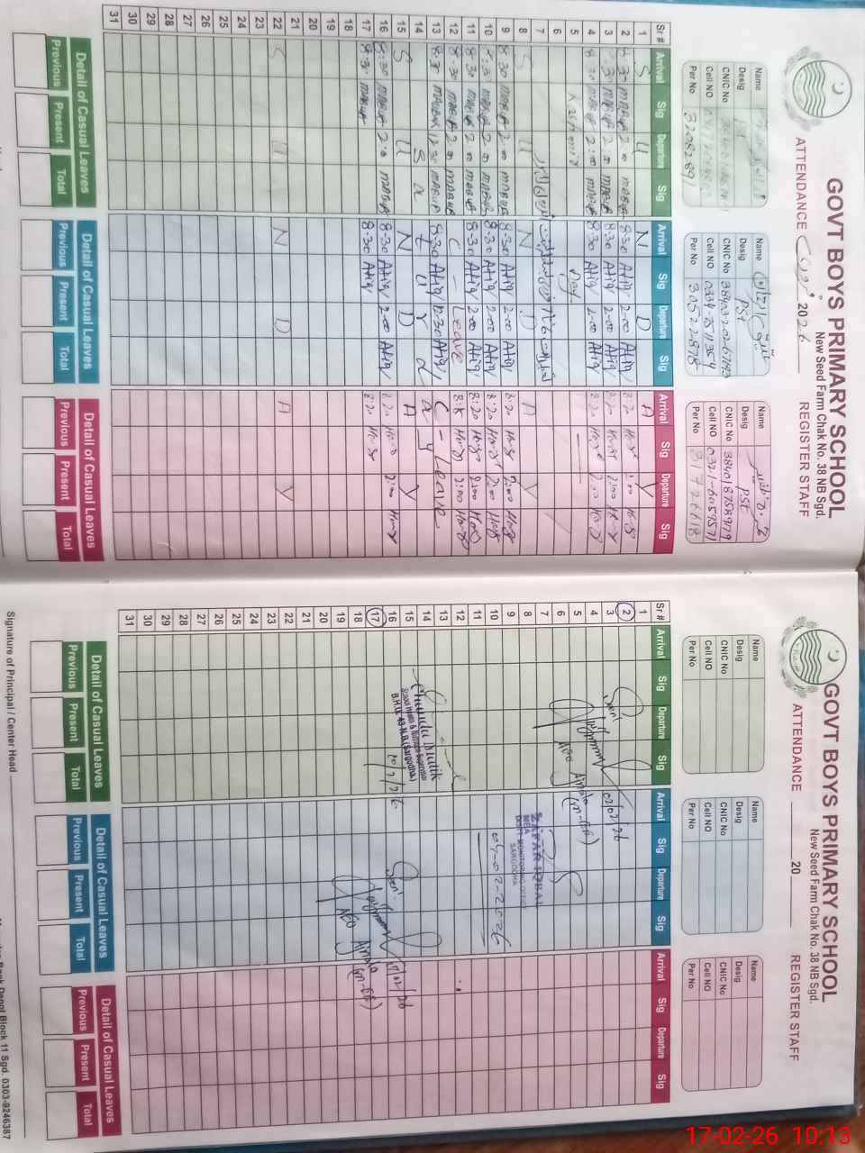 | CNIC | Full Name | Designation | R/C | Absence During Last Calender Month |