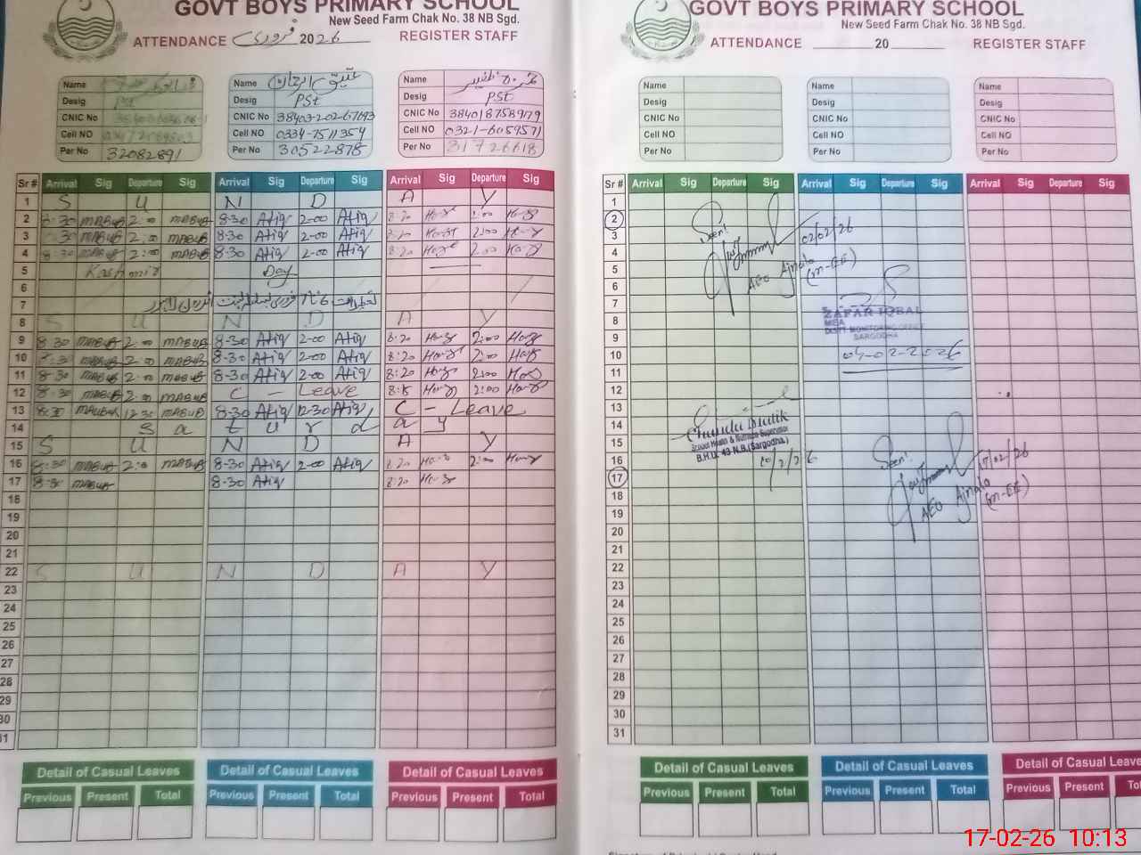 | CNIC | Full Name | Designation | R/C | Absence during last cal. month |