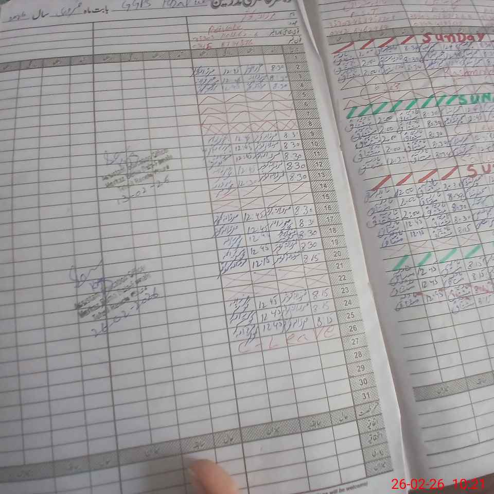 | CNIC | Full Name | Designation | R/C | Absence During Last Calender Month |