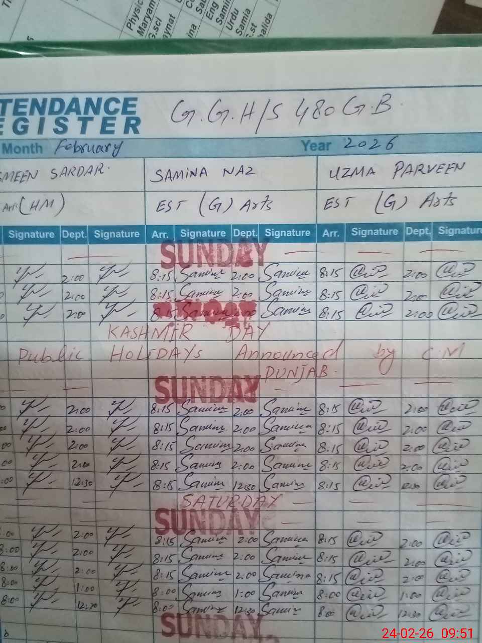 | CNIC | Full Name | Designation | R/C | Absence During Last Calender Month |