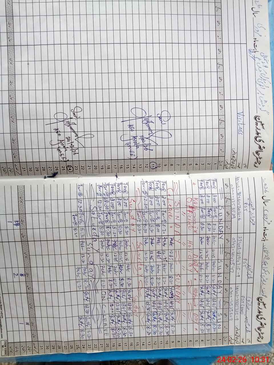 | CNIC | Full Name | Designation | R/C | Absence During Last Calender Month |