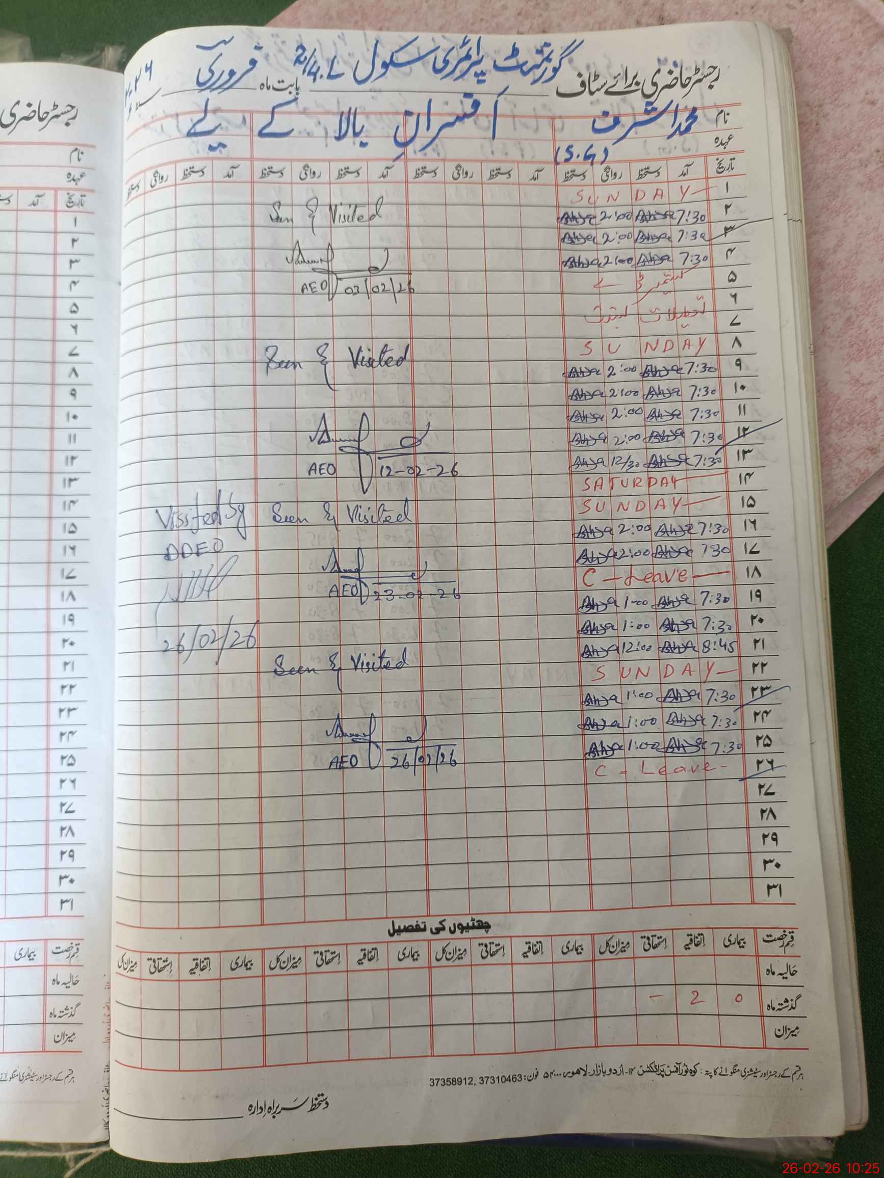 | CNIC | Full Name | Designation | R/C | Absence During Last Calender Month |