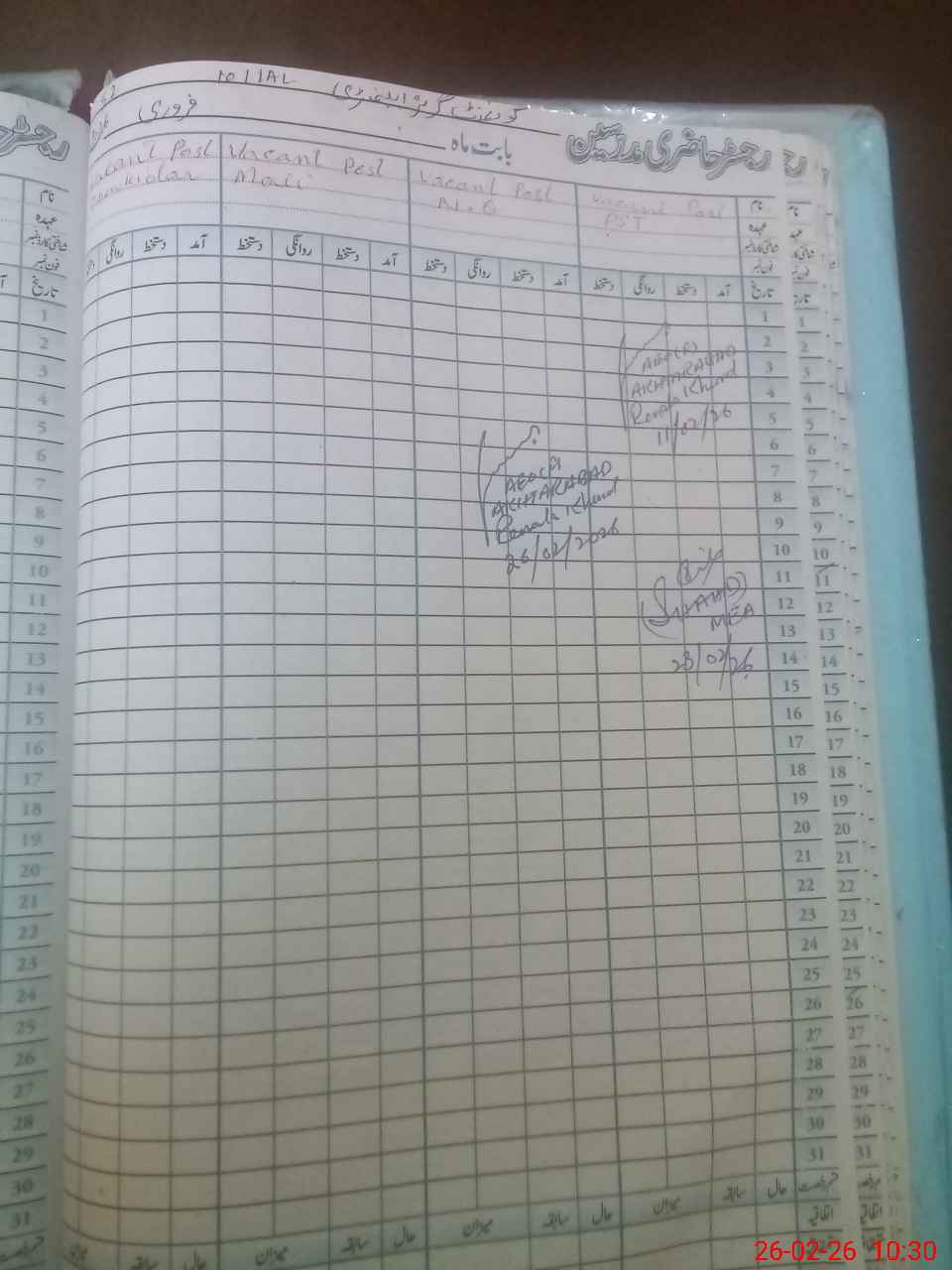 | CNIC | Full Name | Designation | R/C | Absence During Last Calender Month |