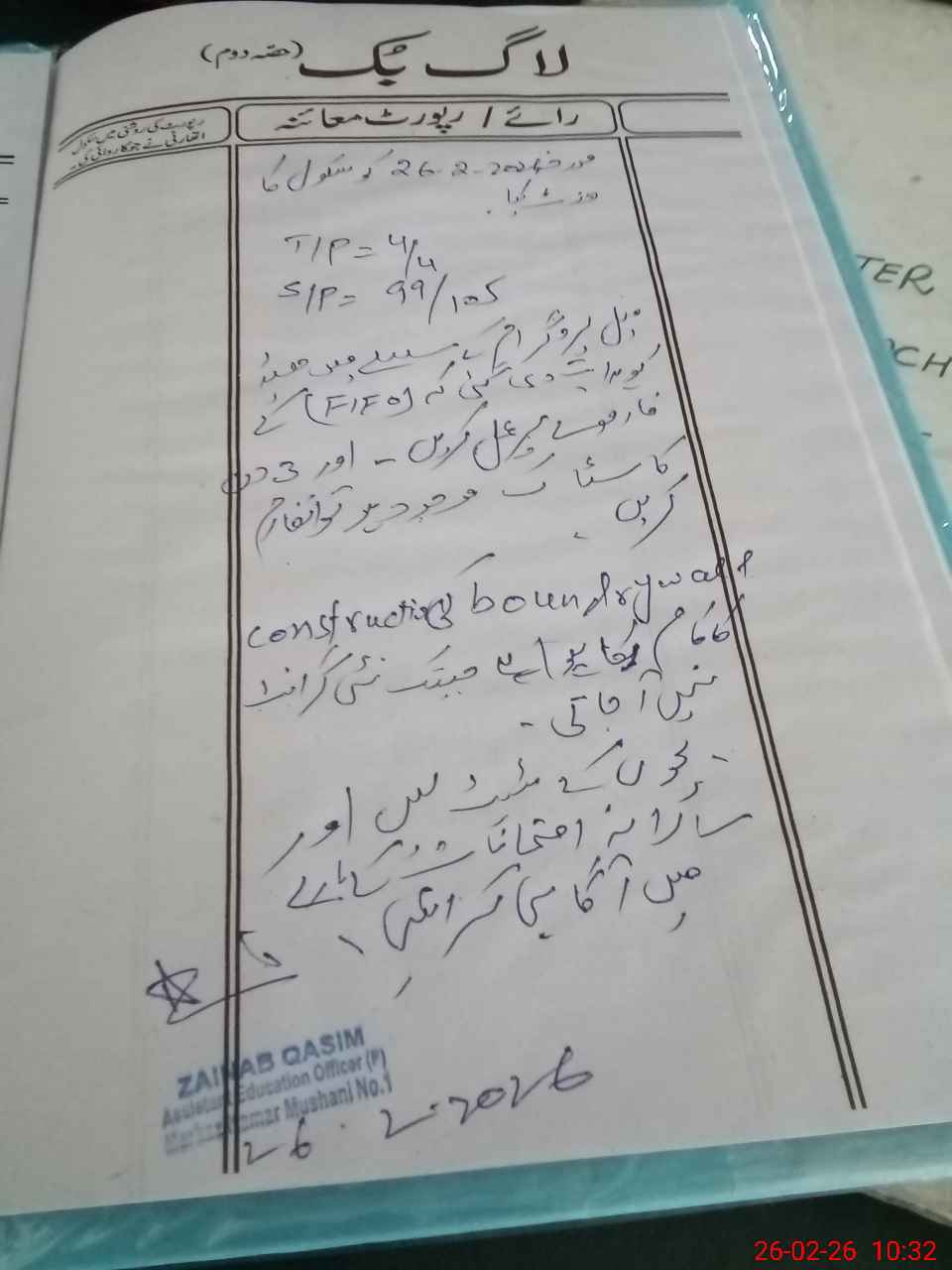 | District: MIANWALI | Tehsil: ISA KHEL | Markaz: KAMMAR MUSHANI NO.1-FEMALE | Level: Primary | |