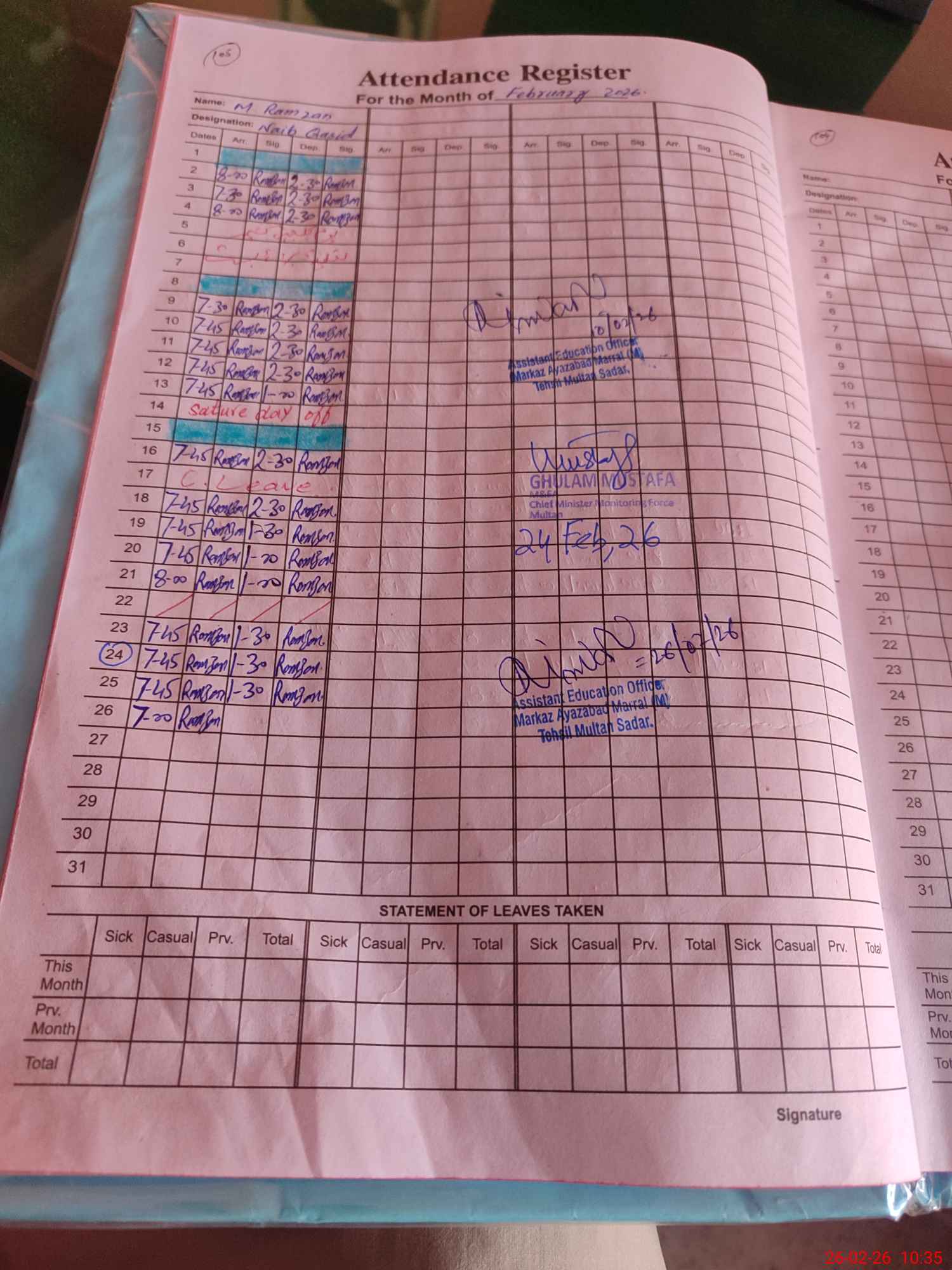 | Leave | Duty | Absent | Maternity | Medical | Ex- Pak |
