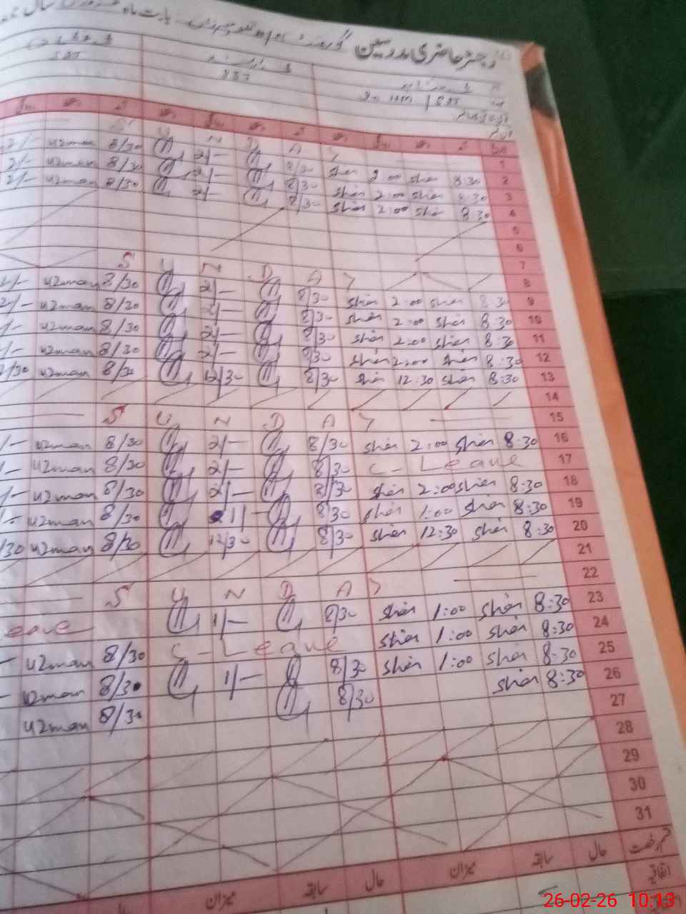 | Leave | Duty | Absent | Maternity | Medical | Ex- Pak |