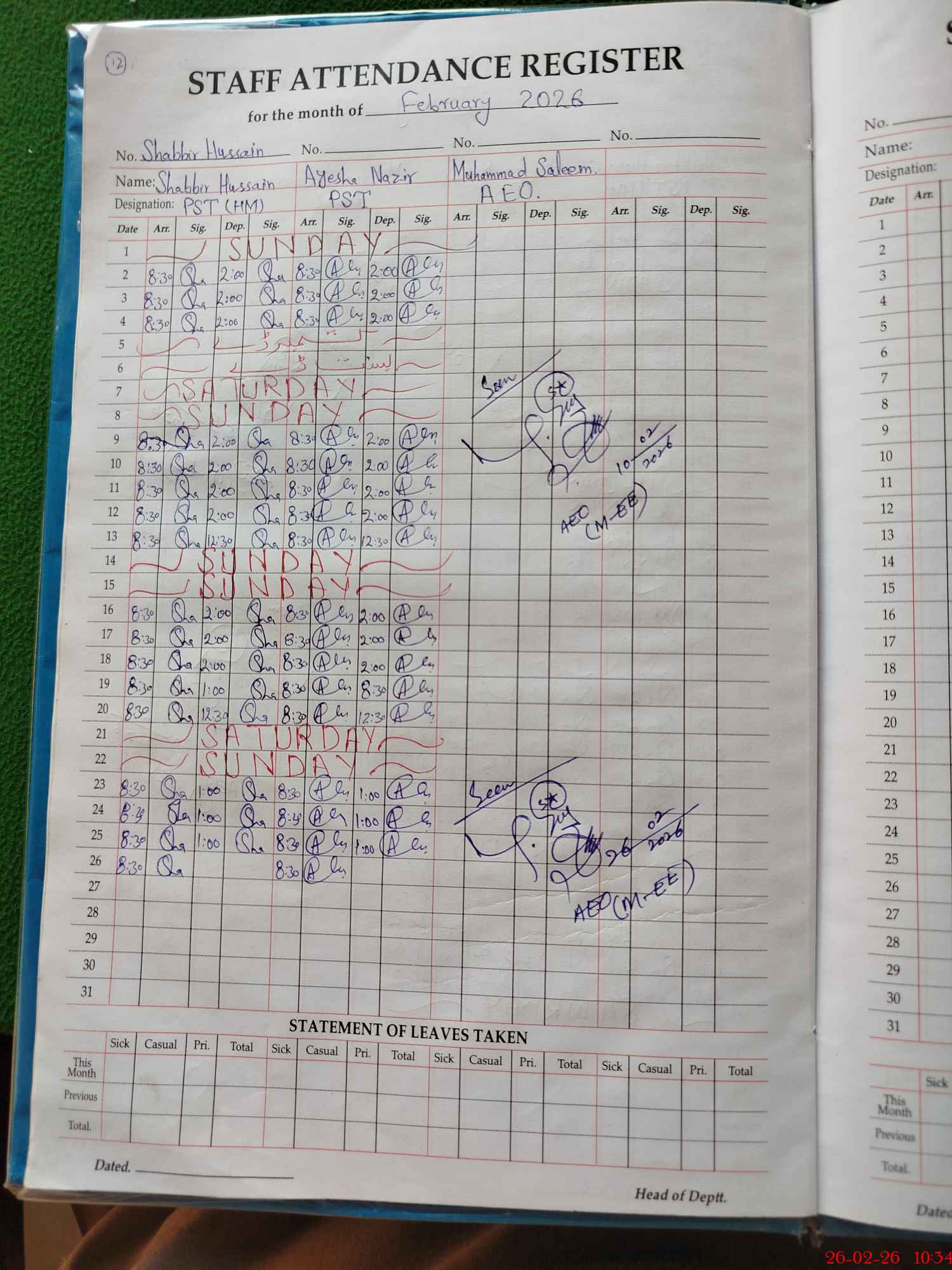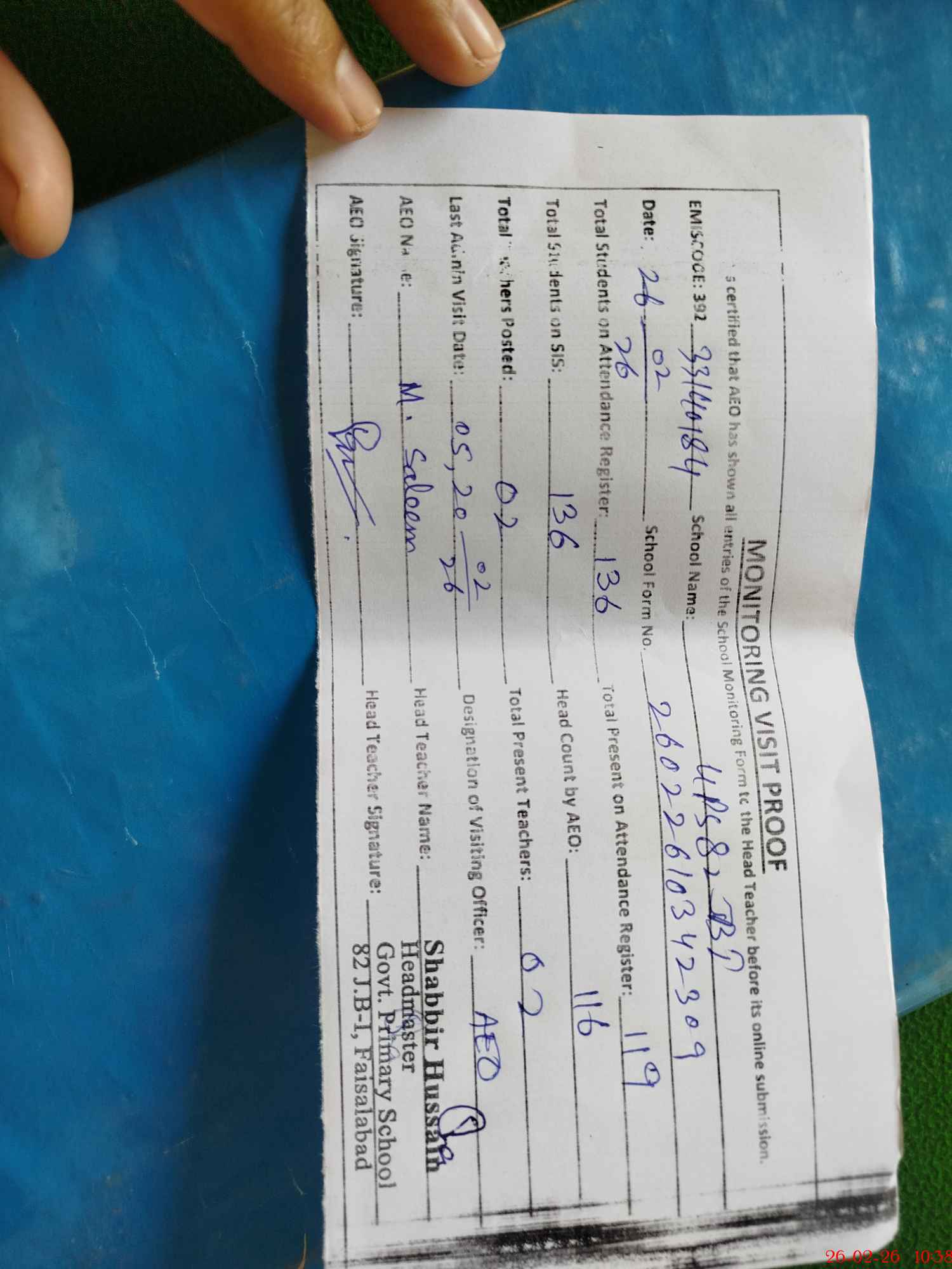| Name: M.Sh**** Designation: (School Headmaster's/Headmistress's) PST Phone/Cell Number: 03**** |