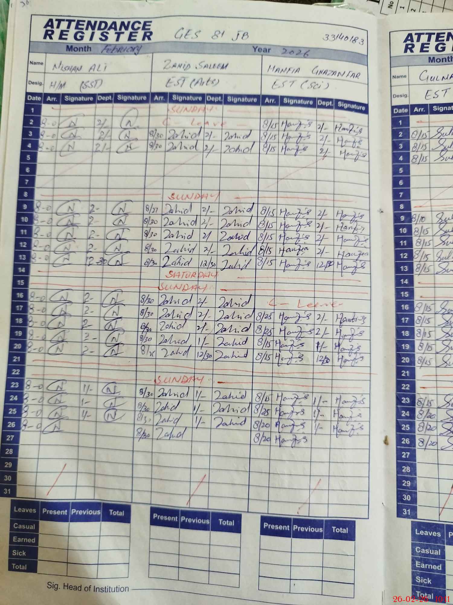 | Monitoring Date: 26-02-2026 | Start Time: 26-02-2026 09:34 AM | End Time: 26-02-2026 10:12 AM | Name of MEA: Mu**** Sa**** | |