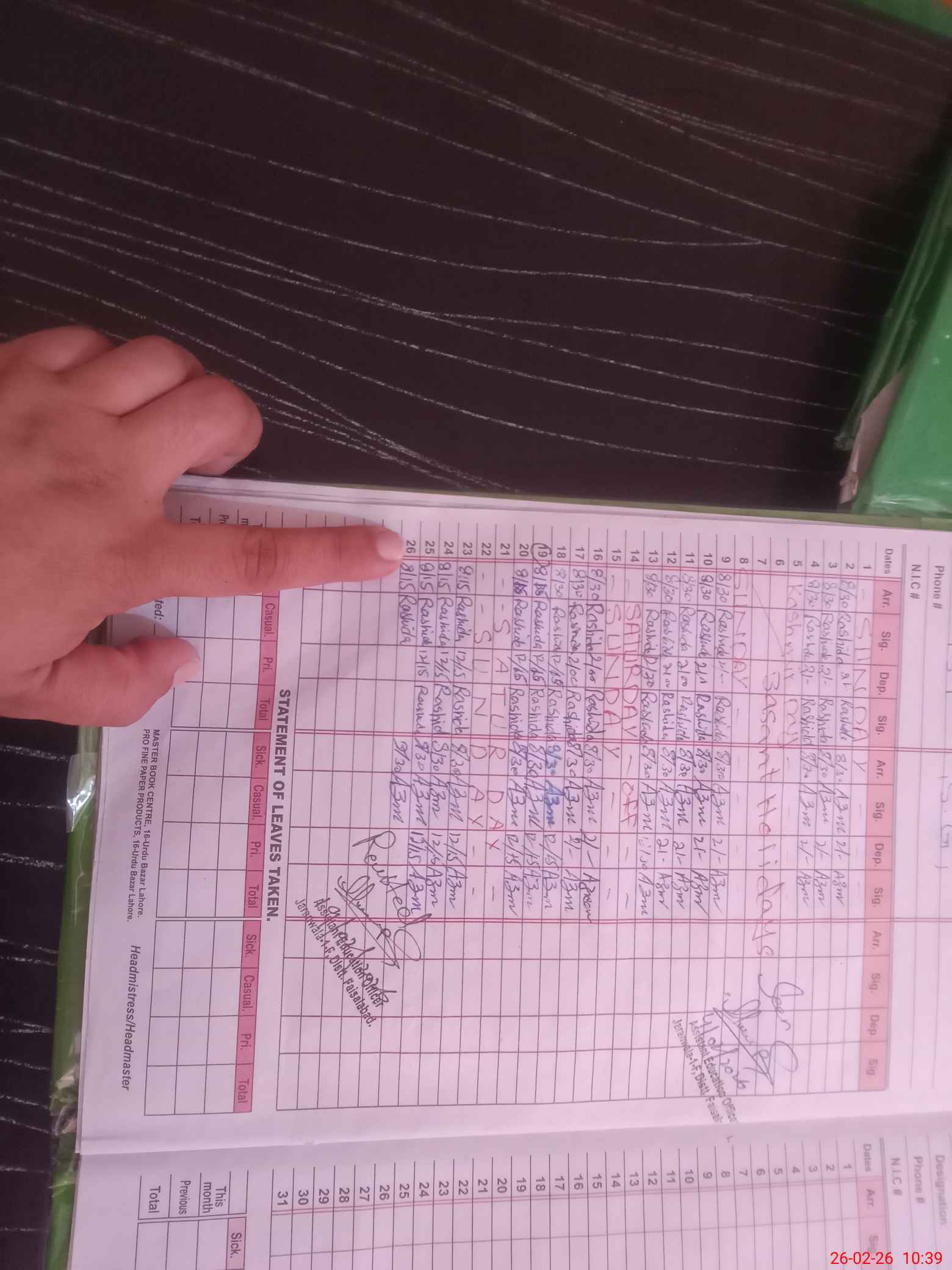 | Name: NA**** AK**** Designation: (School Headmaster's/Headmistress's) PST Phone/Cell Number: 03**** |