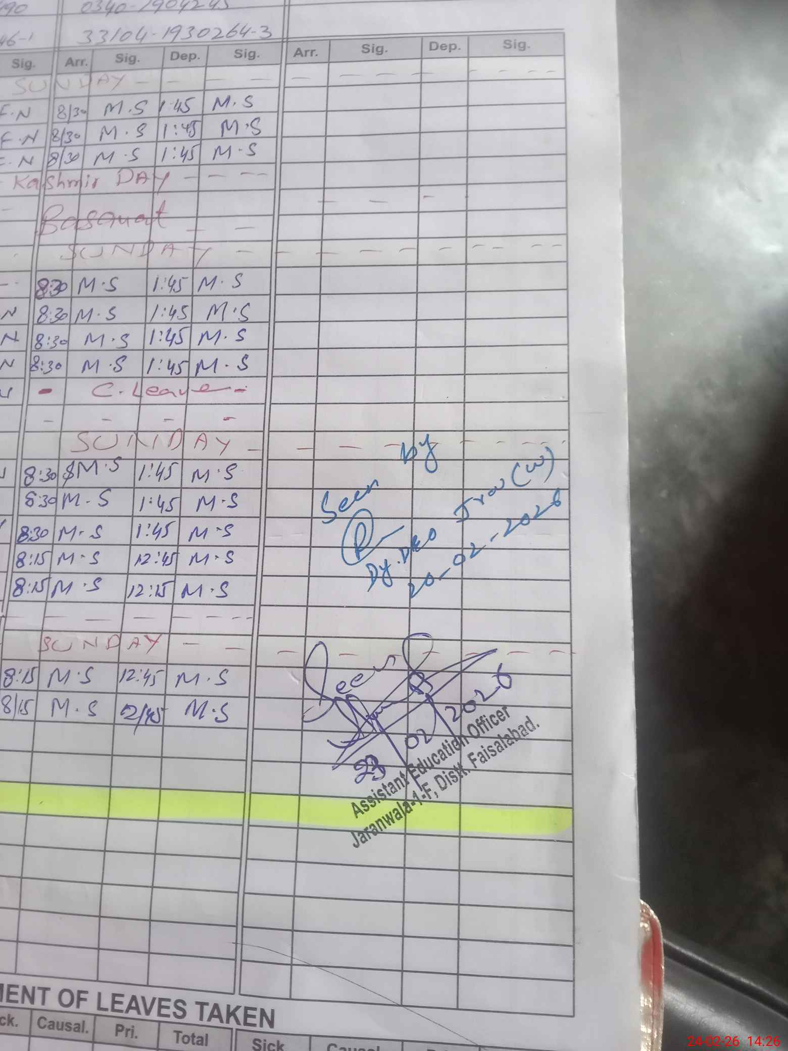 | Name: Sh**** Ha**** Designation: (School Headmaster's/Headmistress's) Pst Phone/Cell Number: 03**** |