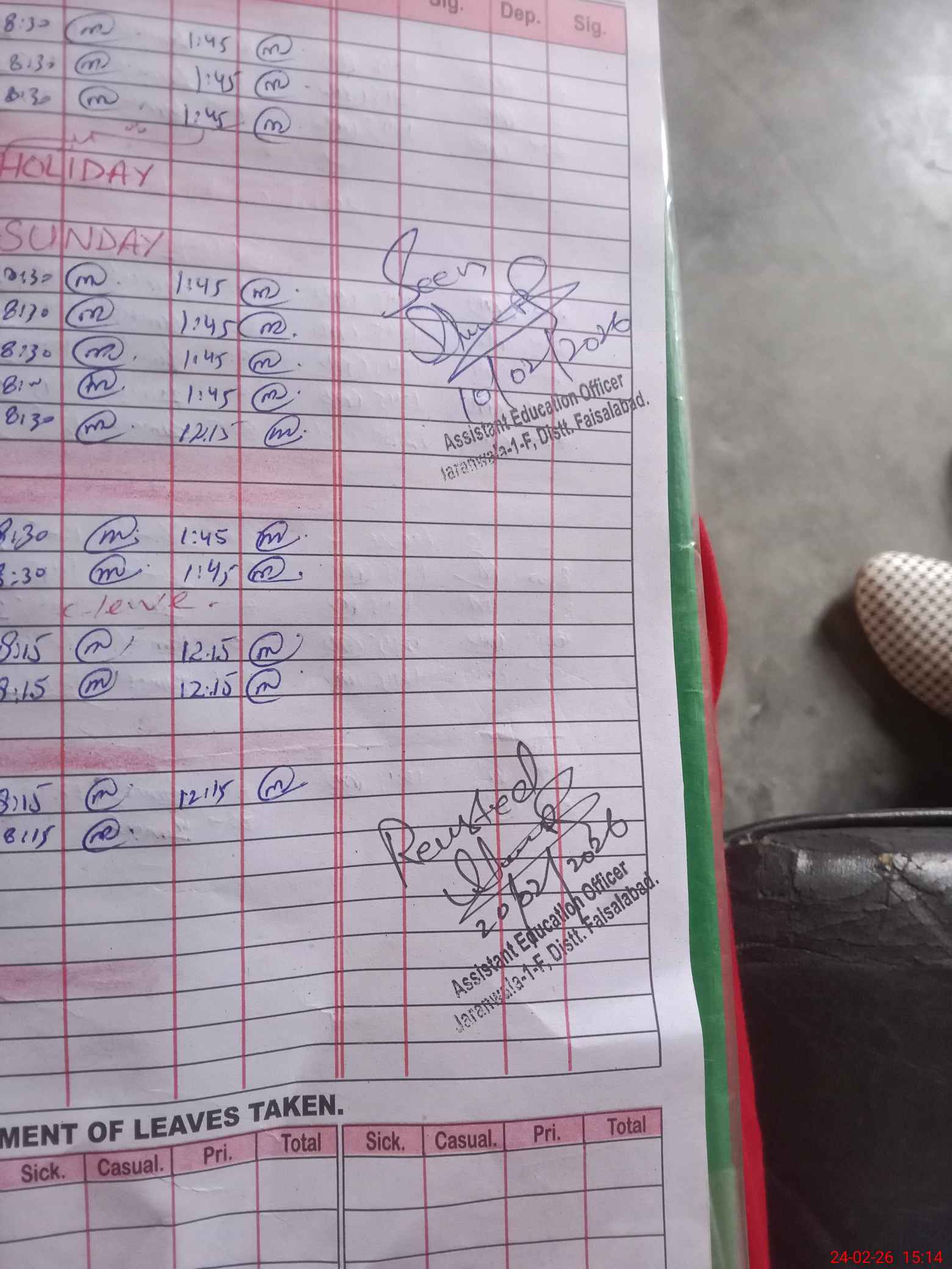 | Leave | Duty | Absent | Maternity | Medical | Ex- Pak |
