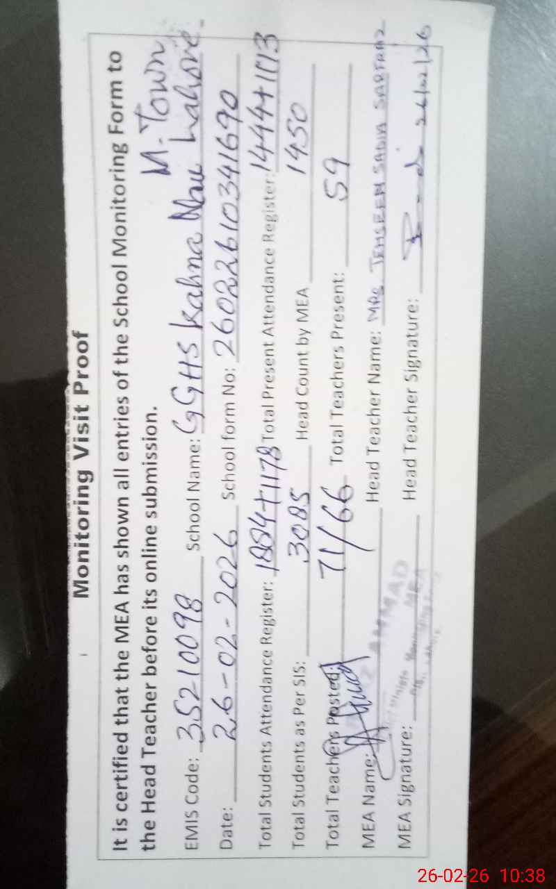 | EMIS Code: 35210098 | Name of School: GGHS KAHNA NAU | |||