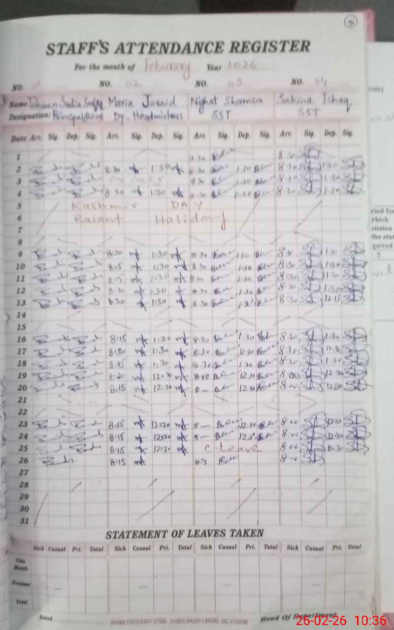 | 35**** | Af**** Ki**** | EST Urdu | Regular | 5 | 0 | 0 | 5 | 0 | 0 | 0 | 0 | 0 | Maternity |