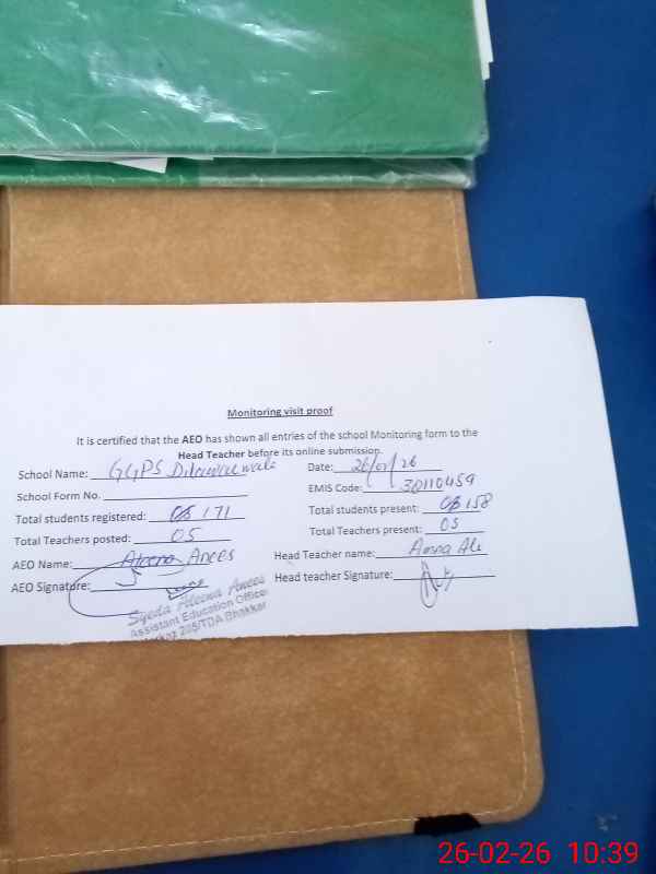| EMIS Code: 38110459 | Name of School: GGPS DILAWAR WALA | |||