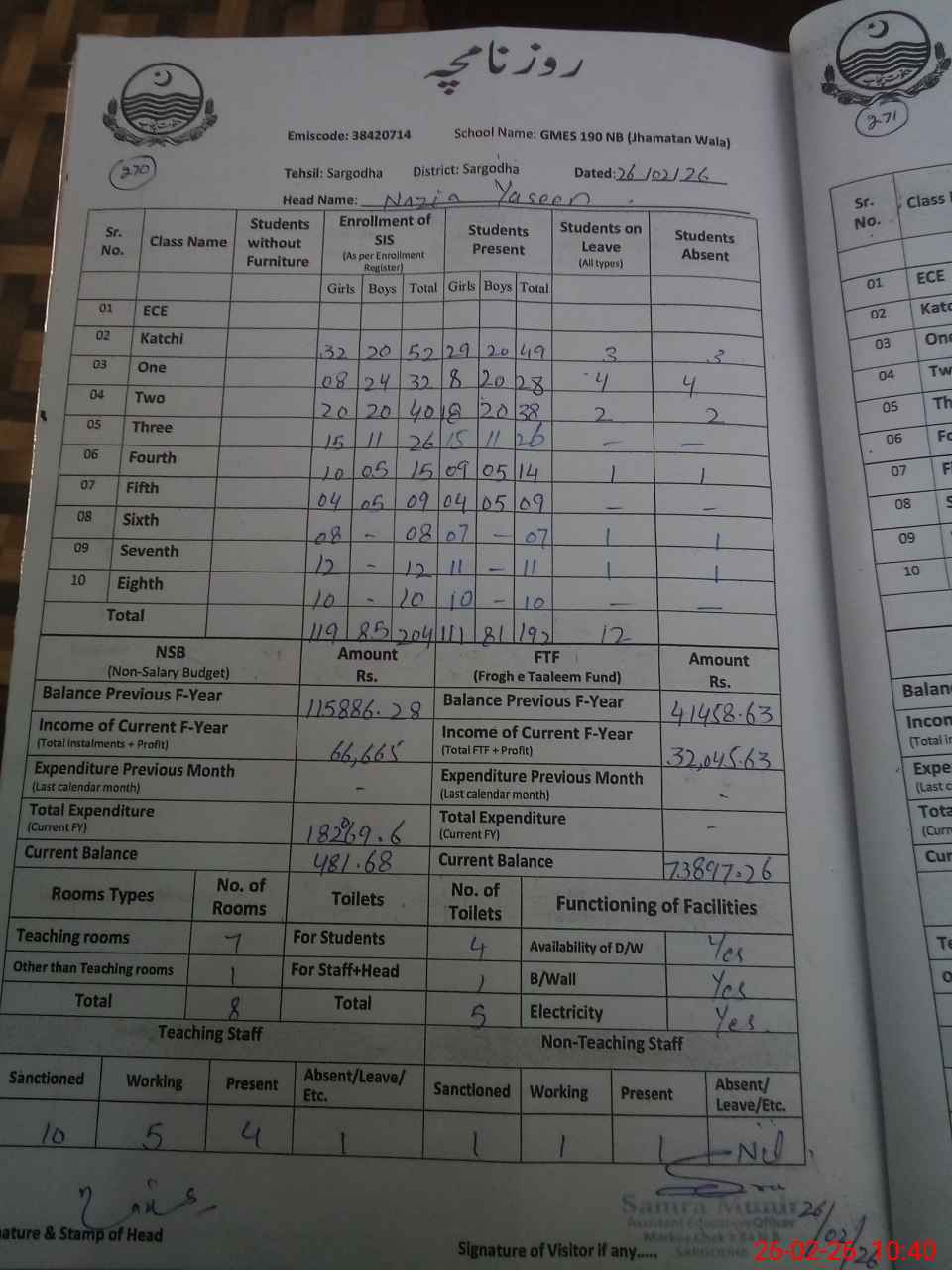 | EMIS Code: 38420714 | Name of School: GGES CHAK NO.190 NB JHAMAT WALA | |||
