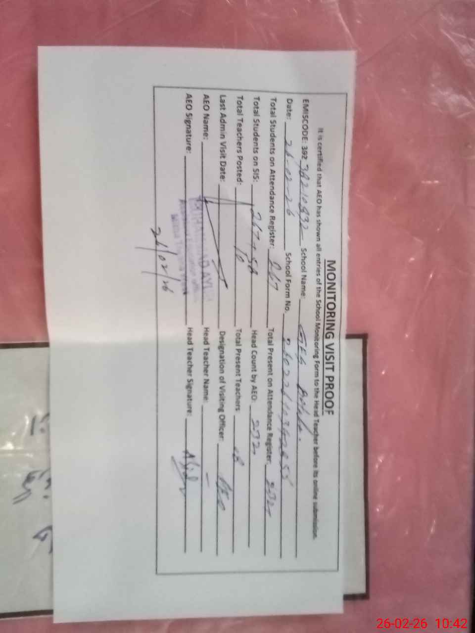 | Certified that this School was Inspected by the Undersigned MEA/DMO Today and the Information Stated Above is as Per Record. | |||||