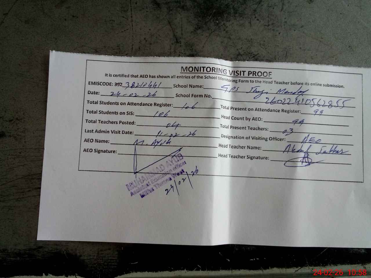 | EMIS Code: 38210441 | Name of School: GPS JHUGI MANDAY | |||