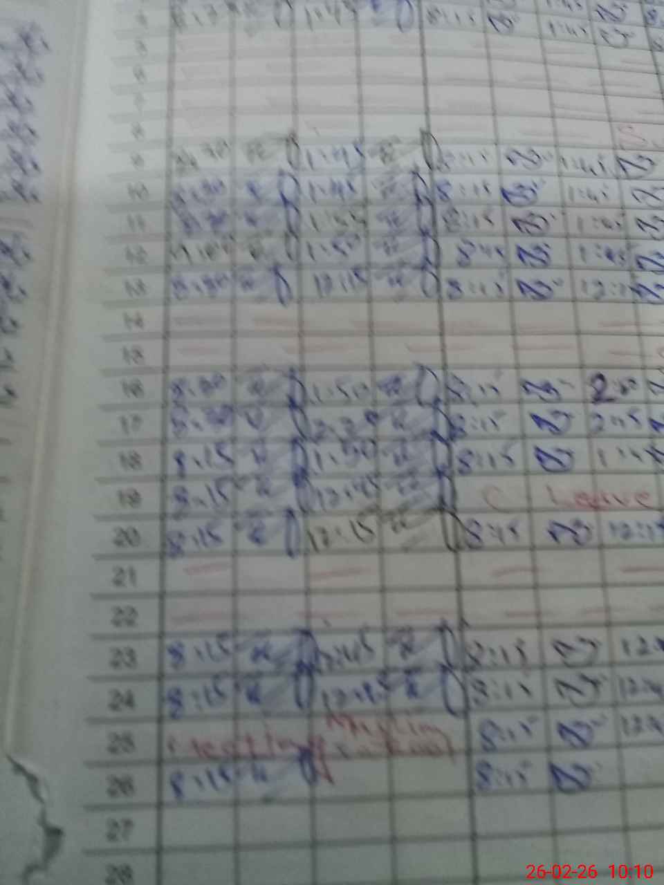| 37**** | Sa**** Ki**** | SSE English | Contract | 0 | 0 | 0 | 0 | 0 | 0 | 0 | 0 | 0 | Casual |