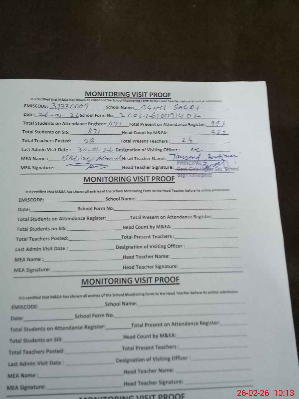 | Monitoring Date: 26-02-2026 | Start Time: 26-02-2026 09:43 AM | End Time: 26-02-2026 10:13 AM | Name of MEA: Is**** Ah**** | |