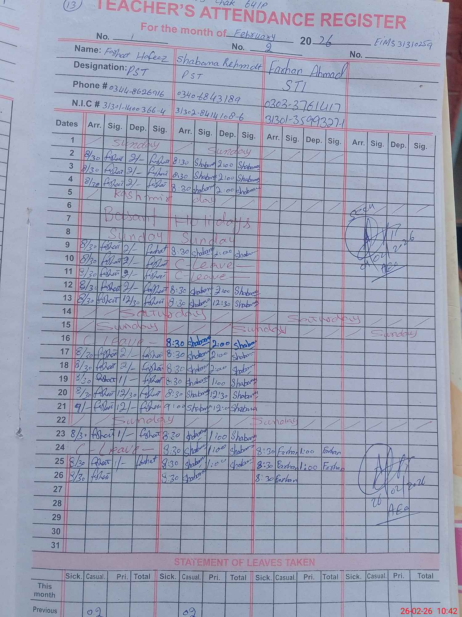 | Name: Fa**** Ha**** Designation: (School Headmaster's/Headmistress's) PST Phone/Cell Number: 03**** |