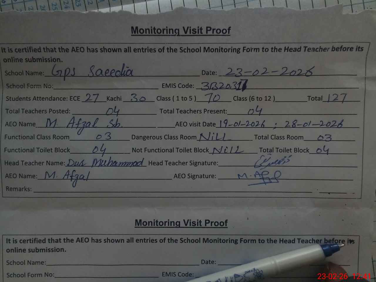 | Monitoring Date: 23-02-2026 | Start Time: 23-02-2026 12:15 PM | End Time: 23-02-2026 12:41 PM | Name of MEA: Mu**** Af**** | |