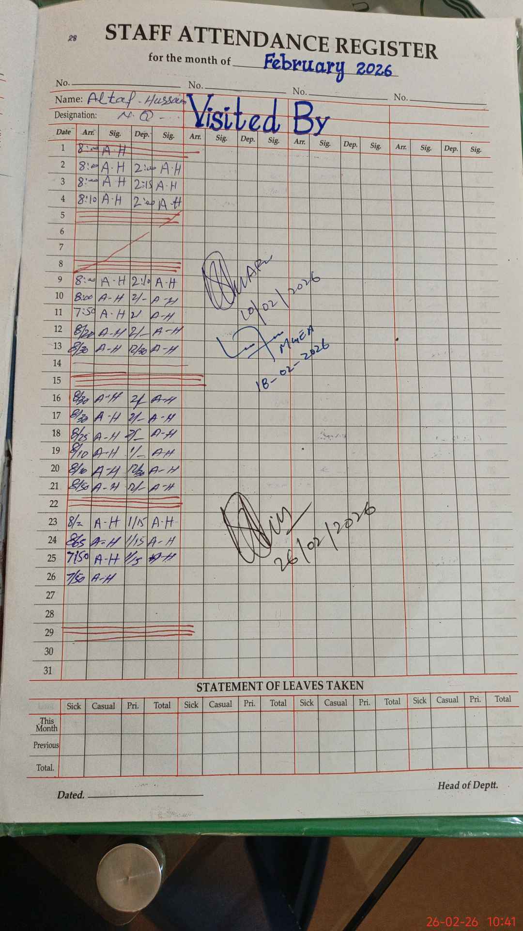 | Monitoring Date: 26-02-2026 | Start Time: 26-02-2026 10:29 AM | End Time: 26-02-2026 10:43 AM | Name of MEA: Mu**** Hu**** | |