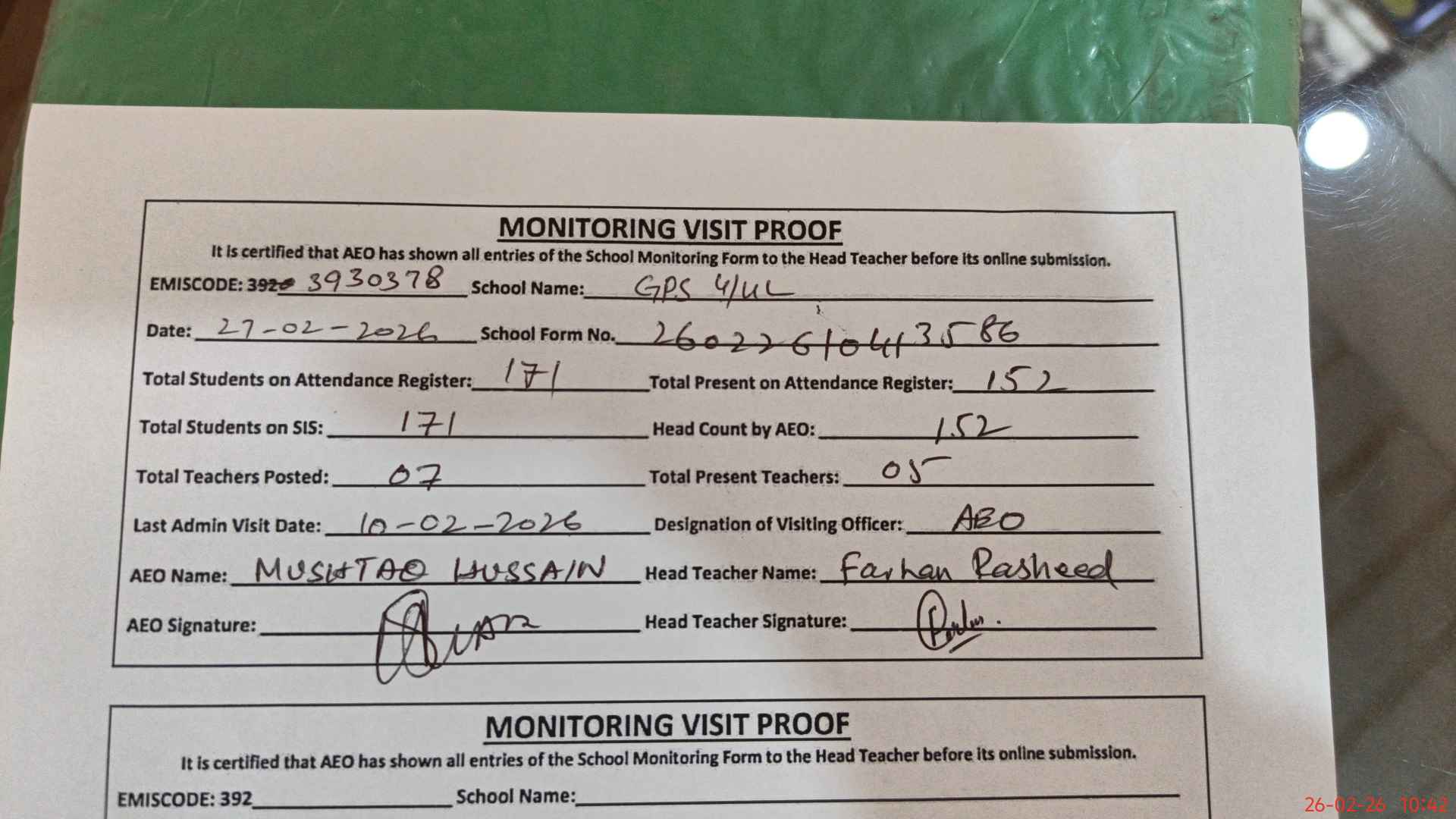 | EMIS Code: 39320378 | Name of School: GPS CHAK 4/4-L | |||