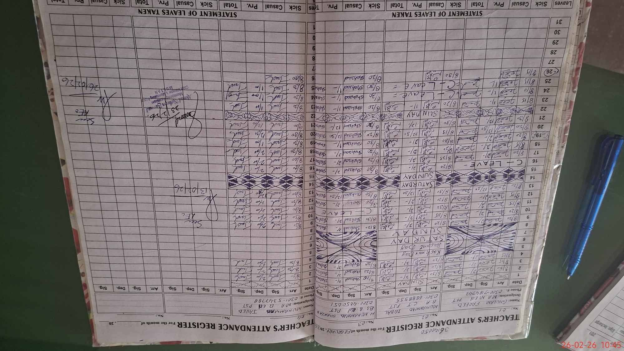 | Leave | Duty | Absent | Maternity | Medical | Ex- Pak |