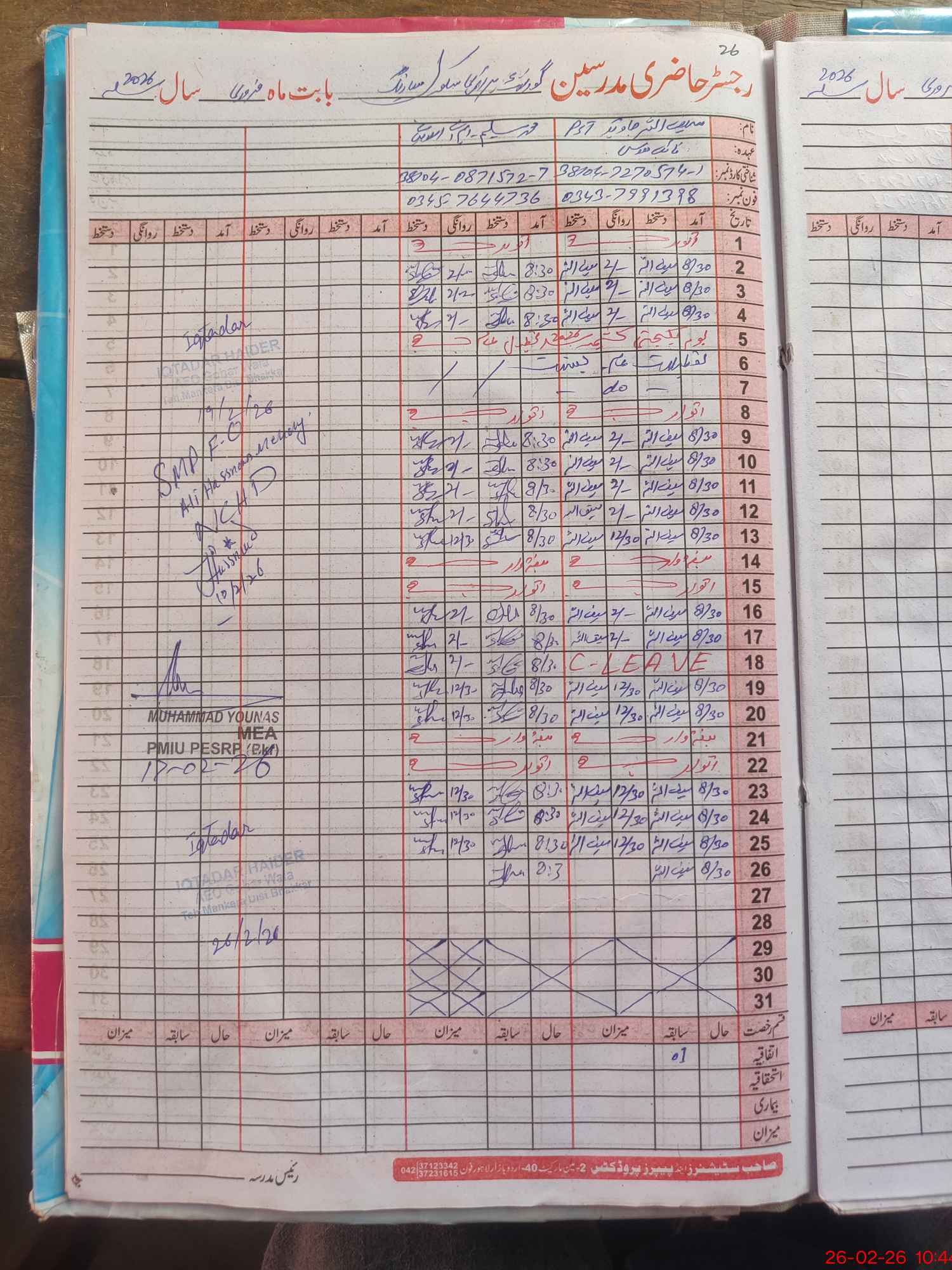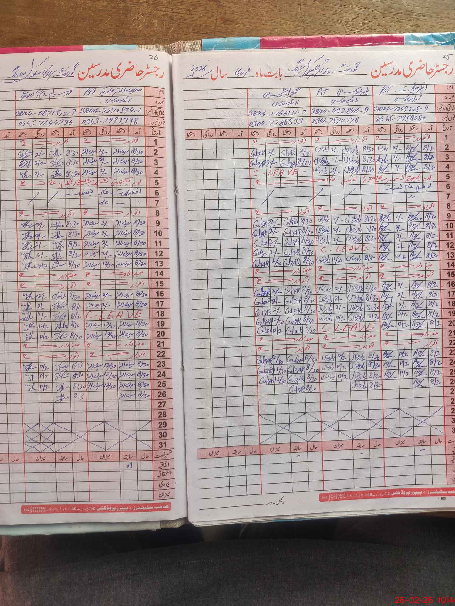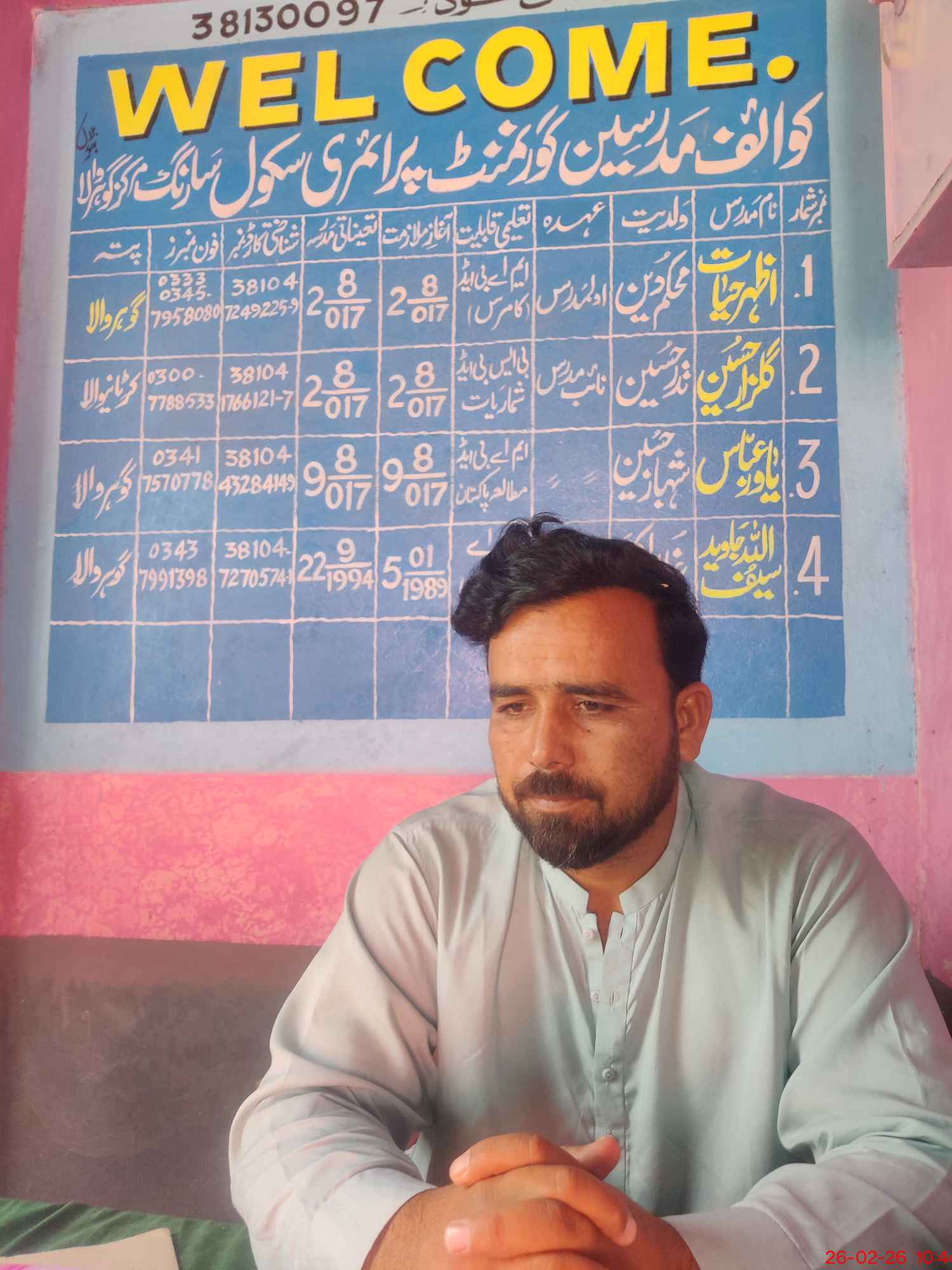 | Name: Az**** Ha**** Designation: (School Headmaster's/Headmistress's) PTC/JV Phone/Cell Number: 03**** |
