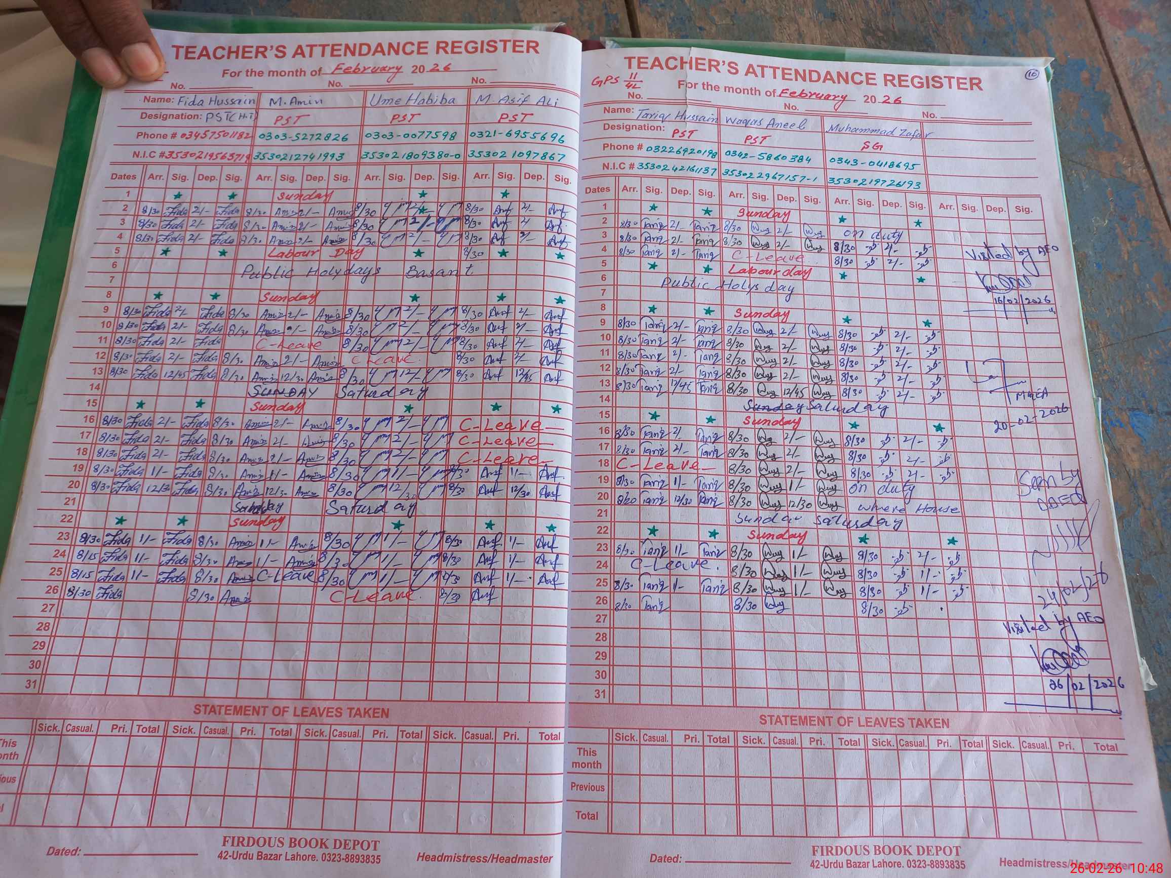 | Name: FI**** HU**** Designation: (School Headmaster's/Headmistress's) PST H MASTER Phone/Cell Number: 03**** |