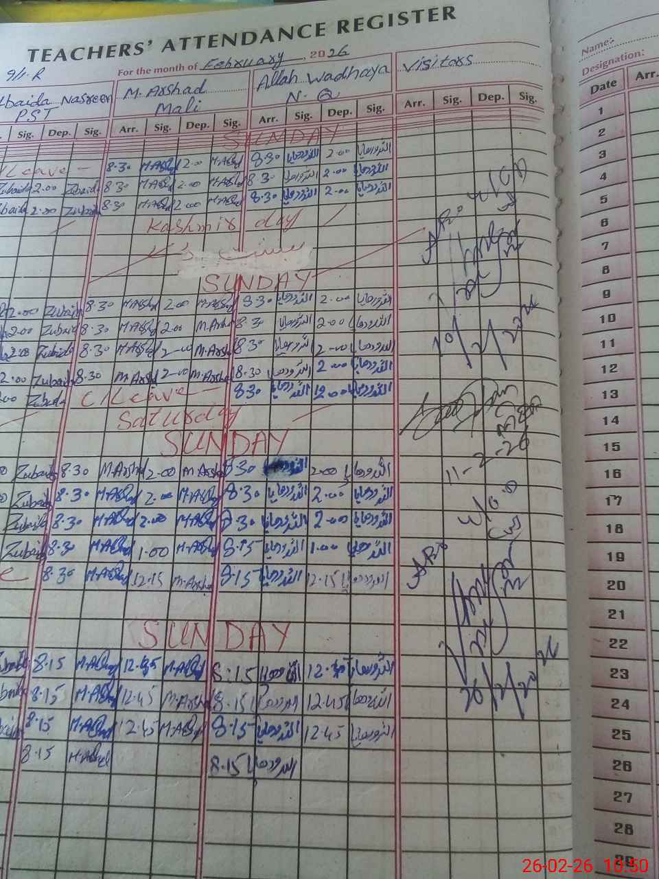 | Sr.No. | Visit Date | Designation | ||