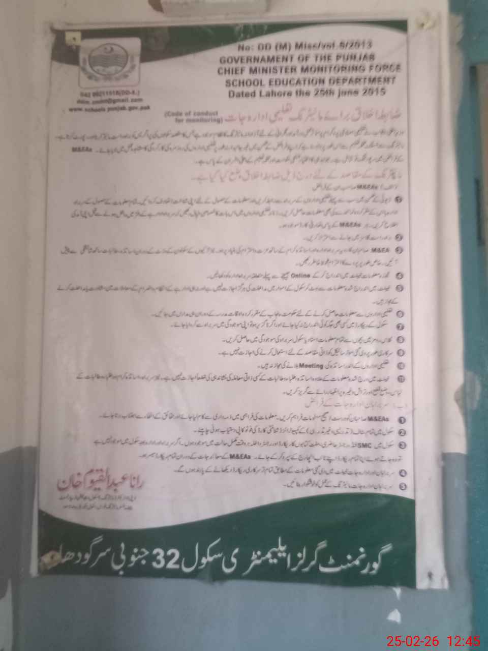 | EMIS Code: 38420173 | Name of School: GGES CHAK NO. 32 SB | |||