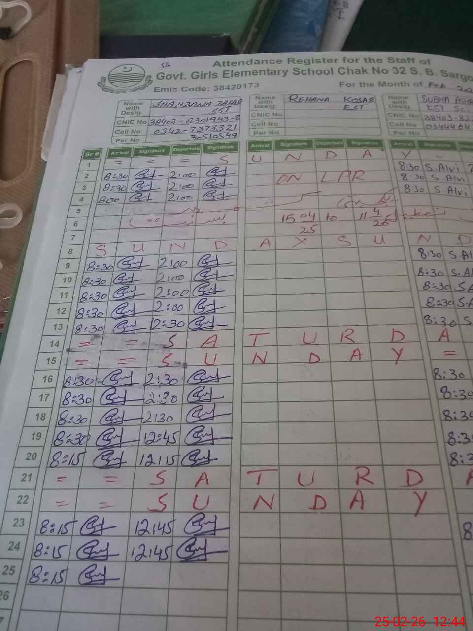 | Name: SH**** ZA**** Designation: (School Headmaster's/Headmistress's) S.S.T.(Arts) Phone/Cell Number: 03**** |